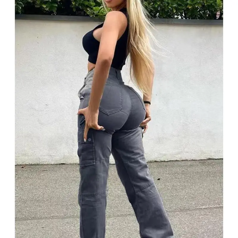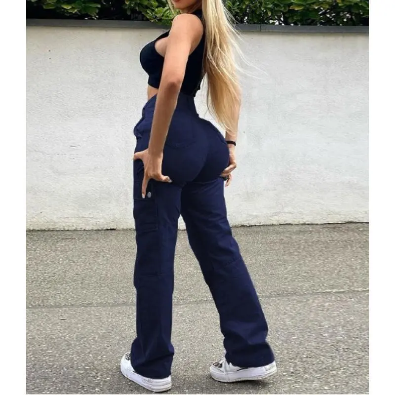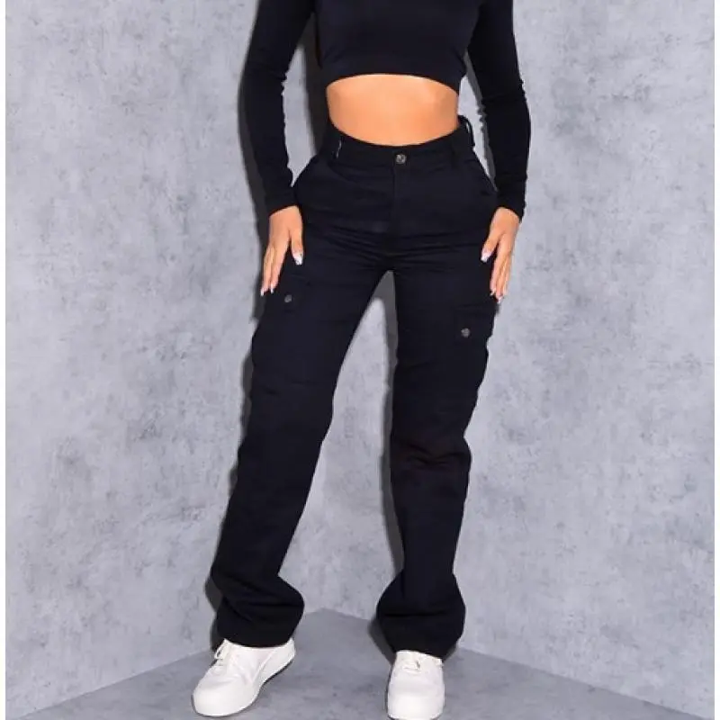 HighElasticWomen'sSolidColorCasualMulti-PocketWorkwearTrendyWildHip-LiftingLongJeansWomenswearBottom