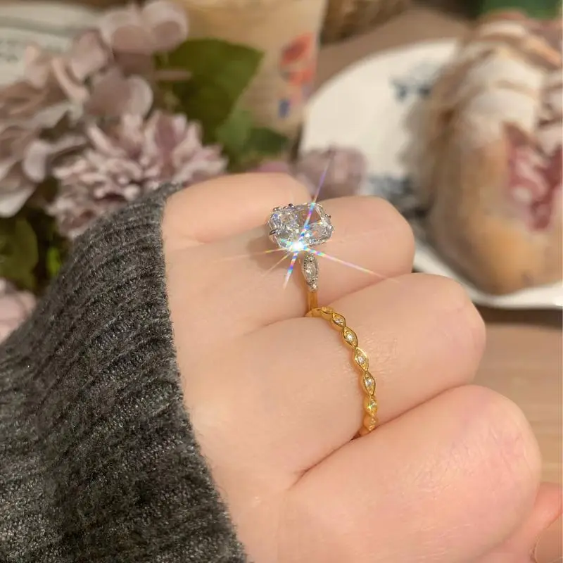Material: S925 Sterling Silver/ 6A Cubic Zirconia Main Stone type: 7*9mm Ring Size: 5/6/7/8/9 Introducing our stunning S925 Sterling Silver Ice Flower Cut Three stones Square Ring featuring a 7*9mm 8A Cubic Zirconia. Crafted with high-grade zircon, this ring is truly a showstopper. We use high-grade zircon in our jewelry, which sets us apart from other low-grade zircon options on the market. The high-grade zircon we use has higher dispersion, resulting in a stronger refractive index and a more brilliant shine. Additionally, high-grade zircon has a higher density, making it more solid and wear-resistant. The Ice Flower Cut Three stones Square design of this ring adds a touch of elegance and sophistication to any outfit. The 8A Cubic Zirconia stone sparkles with a great fire color, making it a standout piece in your jewelry collection. Whether you're dressing up for a special occasion or simply adding a touch of glamour to your everyday look, this ring is the perfect choice. Treat yourself or someone special to the luxury of high-grade zircon jewelry with our S925 Sterling Silver Ice Flower Cut Three stones Square Ring.