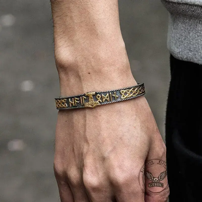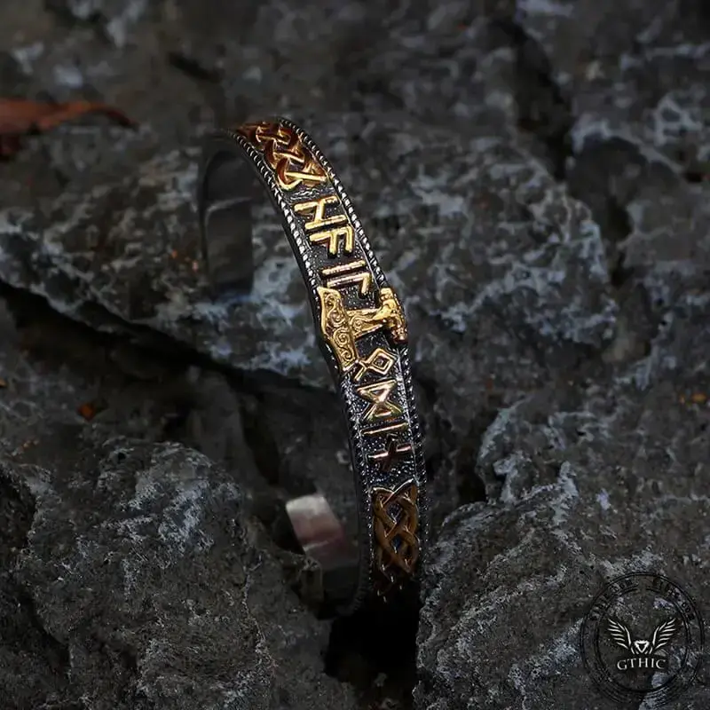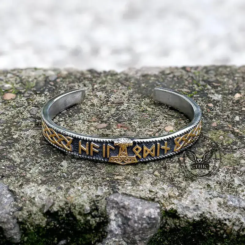 Men's Bracelet - Stainless Steel Cuffs with Celtic Knot and Rune, Norwegian Jewelry Gift