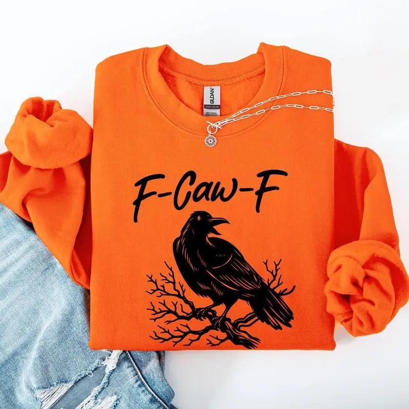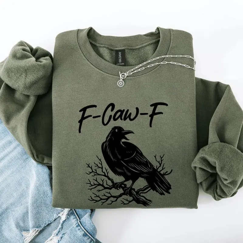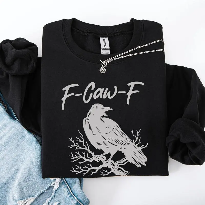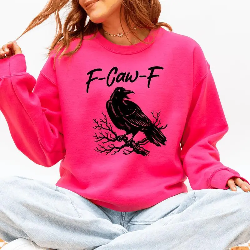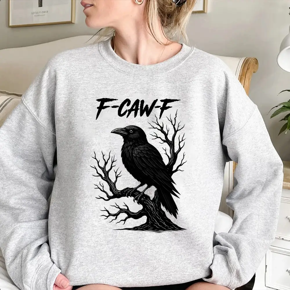 FCawF,Raven,Crow,Funny,Trending,Vulgar,Crude,Halloween,Goth,Witch,Spooky,GraphicSweatshirt,Spooky,Witch,Pumpkin,Halloween,CrewNeck,Women's,Crewneck