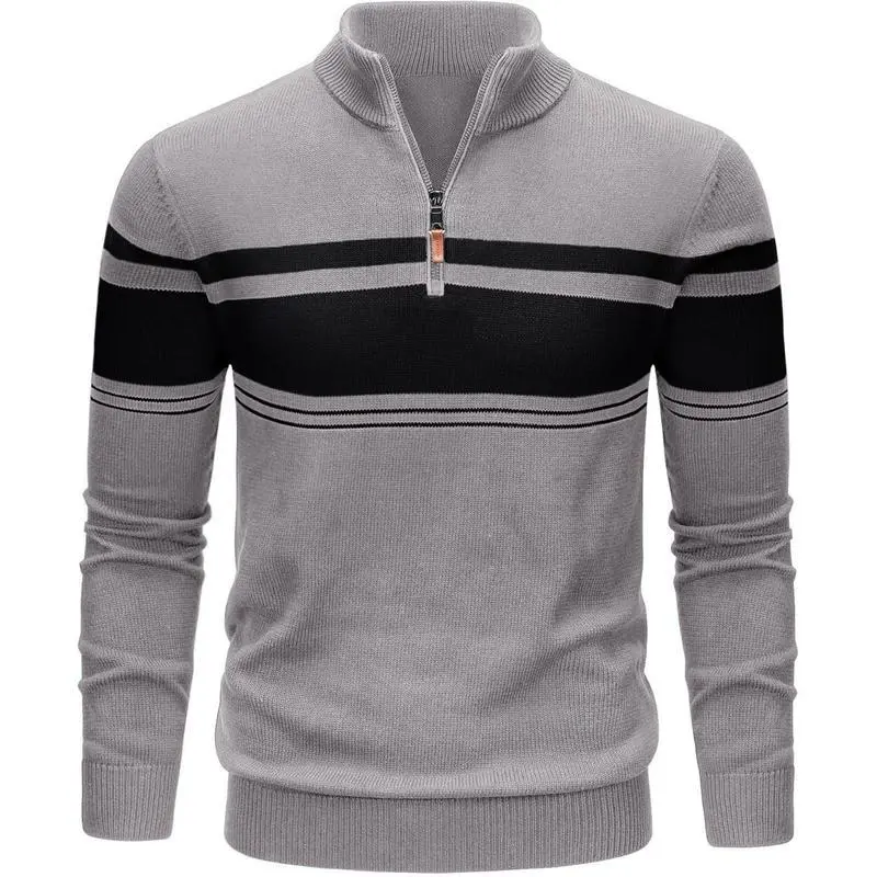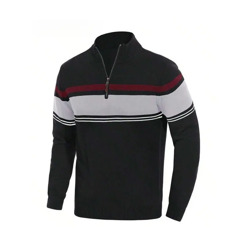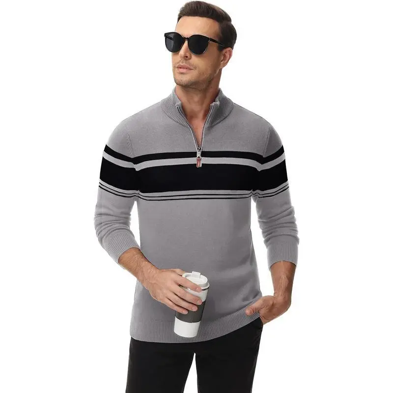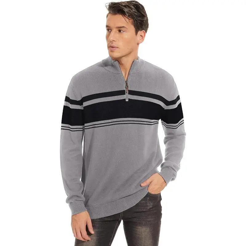 MensSweaterQuarterZipPulloverCottonLongSleeveSweatersStripedCausalPulloversFallWinterSweatshirtshirt