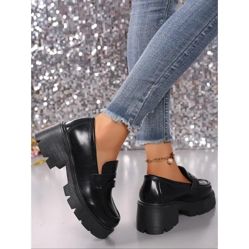 【Rubber Sole】: Equipped with a rubber sole for enhanced traction and durability, making it suitable for various surfaces. 【PU Leather Upper】: Constructed with PU leather for a sophisticated look that combines style with practicality in wear. 【Thick Platform】: Features a thick platform that elevates your height while maintaining balance and stability with every step. 【Ankle Height】: Designed with a shoe height type that goes below the ankle, providing a fresh take on traditional loafers. 【All-Season Wear】: Suitable for all seasons, ensuring you can wear them year-round without compromising on aesthetics.