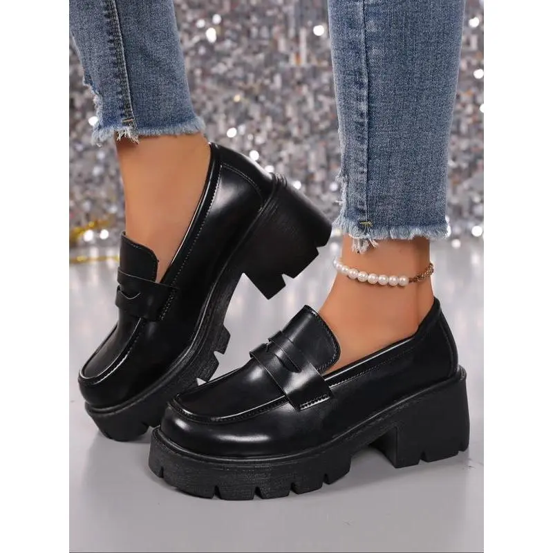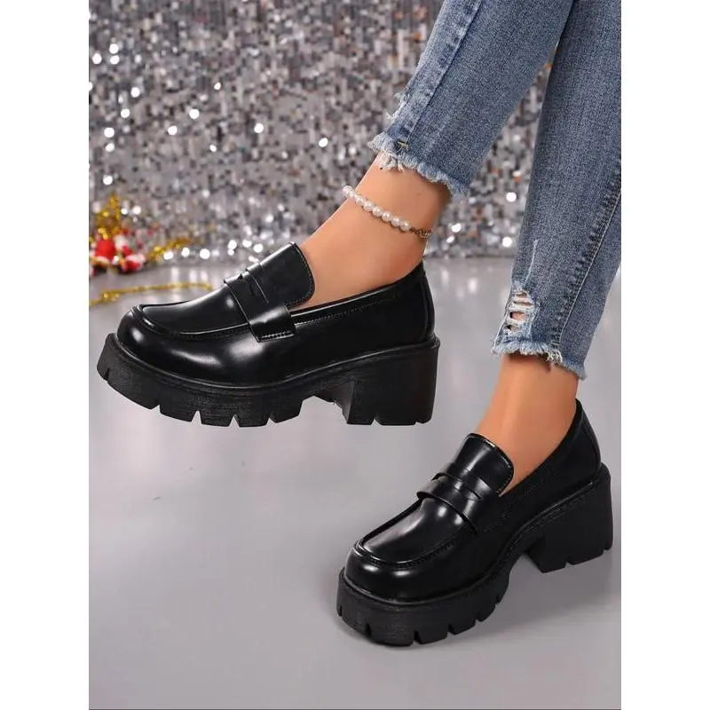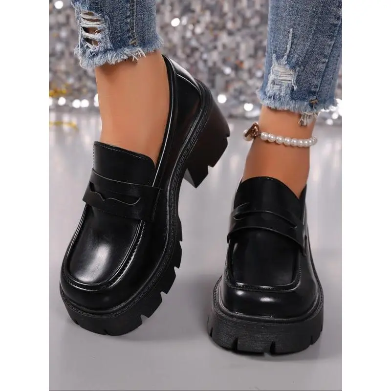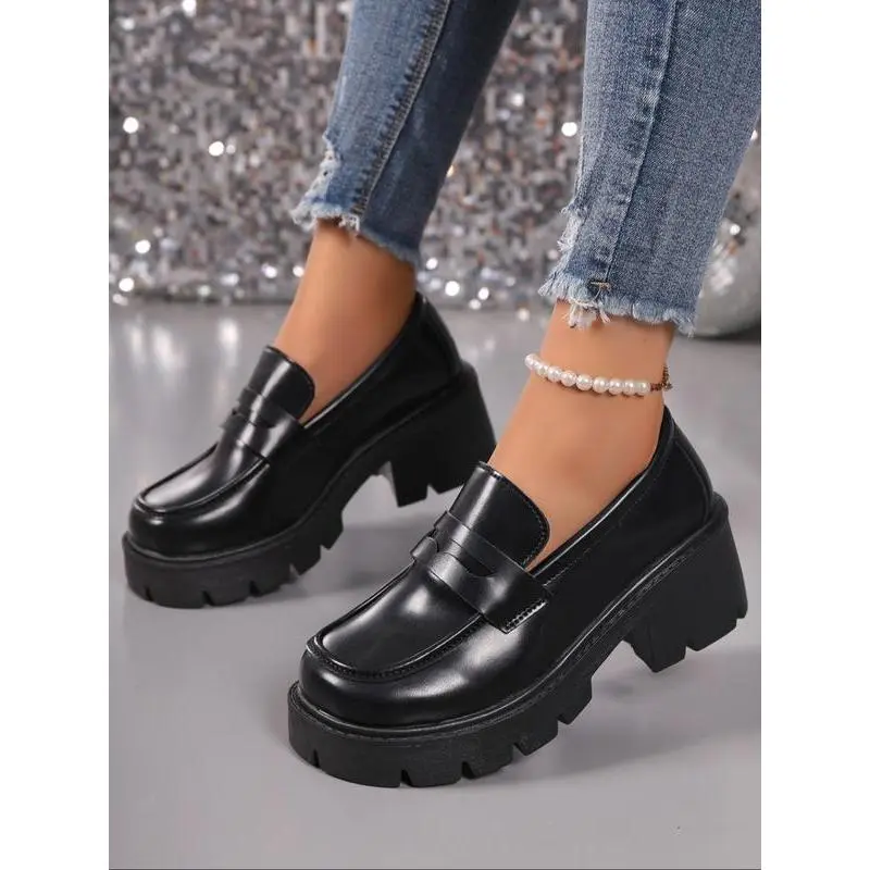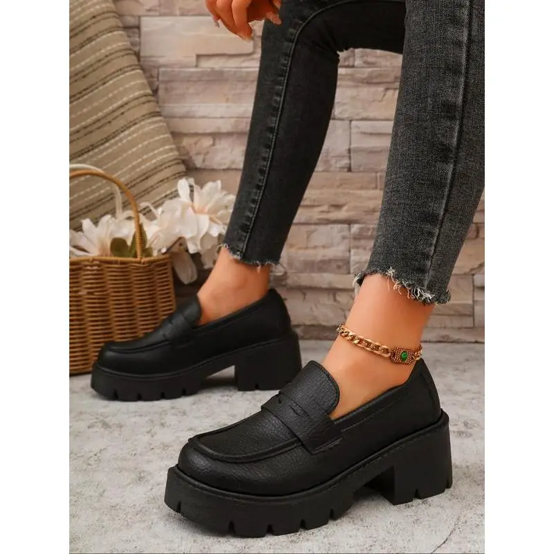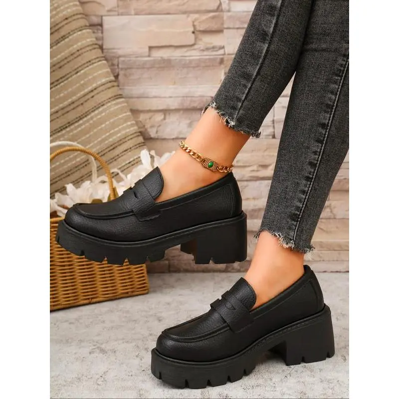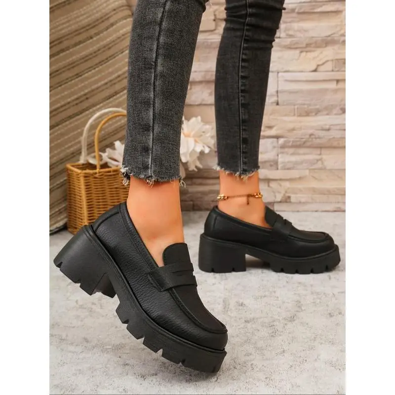 Unlock Chic Style! Leather Thick Sole Loafers, Elevate Your Height & Attract Attention, Trendy Footwear for Stylish Looks