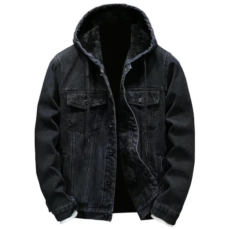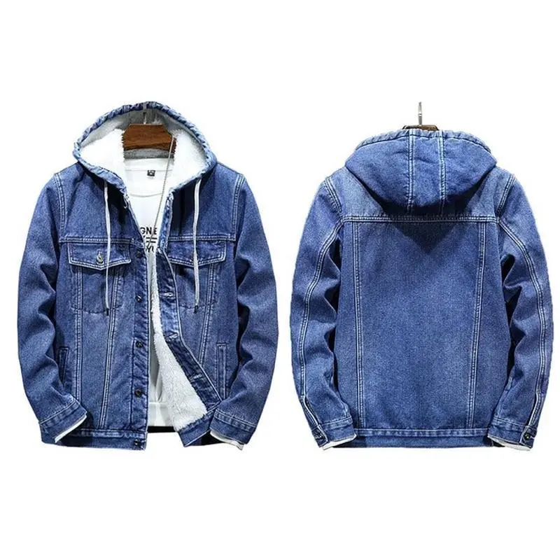 Introducing the men's fleece-lined denim hoodie jacket, a perfect addition to your winter wardrobe.This jacket is designed to keep you warm and comfortable during the cold season.The fleece lining provides extra warmth and comfort, making it ideal for outdoor activities or simply lounging at home. The jacket features a button-down style, allowing for easy on and off and adjustable ventilation.The cowboy jean jacket design adds a stylish and trendy look to the jacket, making it a great choice for casual wear.The thicken trucker coats provide extra warmth and protection against the elements, making it suitable for outdoor activities such as hiking or camping. This jacket is not only stylish but also functional.The sweatshirt design provides a comfortable and relaxed fit, making it perfect for everyday wear.The denim material is durable and long-lasting, making it a great investment for your wardrobe. In summary, the men's fleece-lined denim hoodie jacket is a must-have for the winter season. It is warm, comfortable, and stylish, making it a great addition to your wardrobe. Whether you're going for a hike or just running errands, this jacket will keep you warm and cozy all day long.