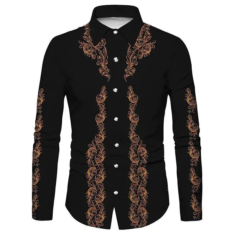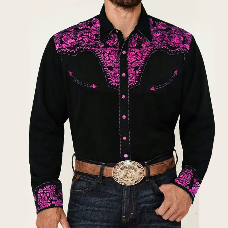 Tribalwesternmen'stopshirtpatternbluepinkblacktrendyfashioncasualpartyhighqualitymaterialsuitMenswearLongSleeveLawnPaisleyCs07