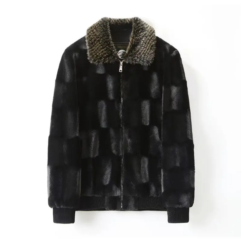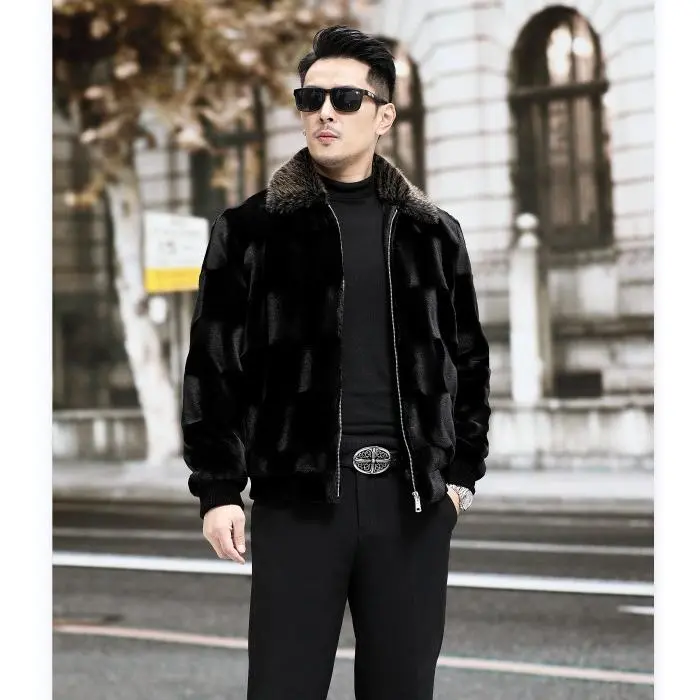 2025 Winter New Faux Fur Bamboo Knot Mink Fur Men's Coat Stand Collar Fur Integrated Jacket