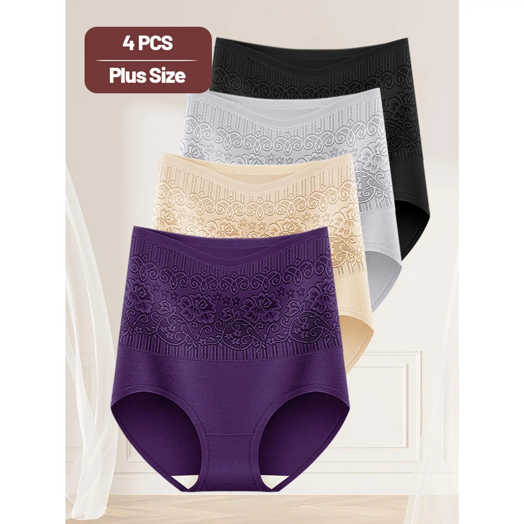 【Plus Size】 Solid Color High Waist Panty, Soft Comfy Breathable Knicker for Daily Wear, Women's Underwear for All Seasons