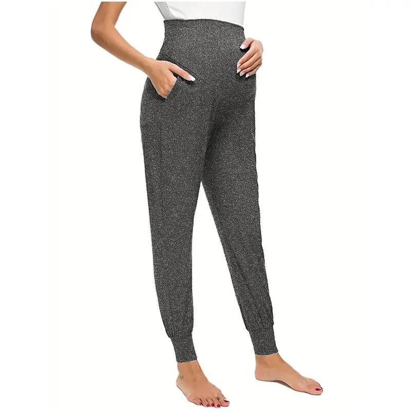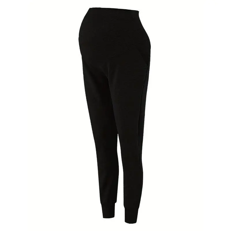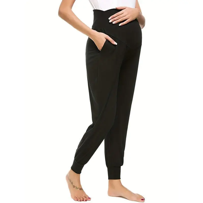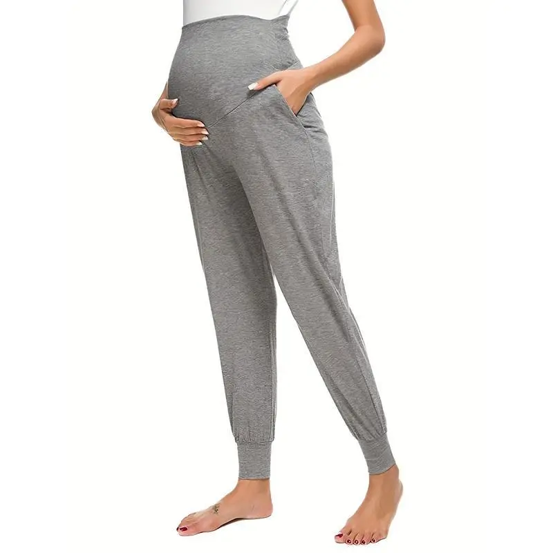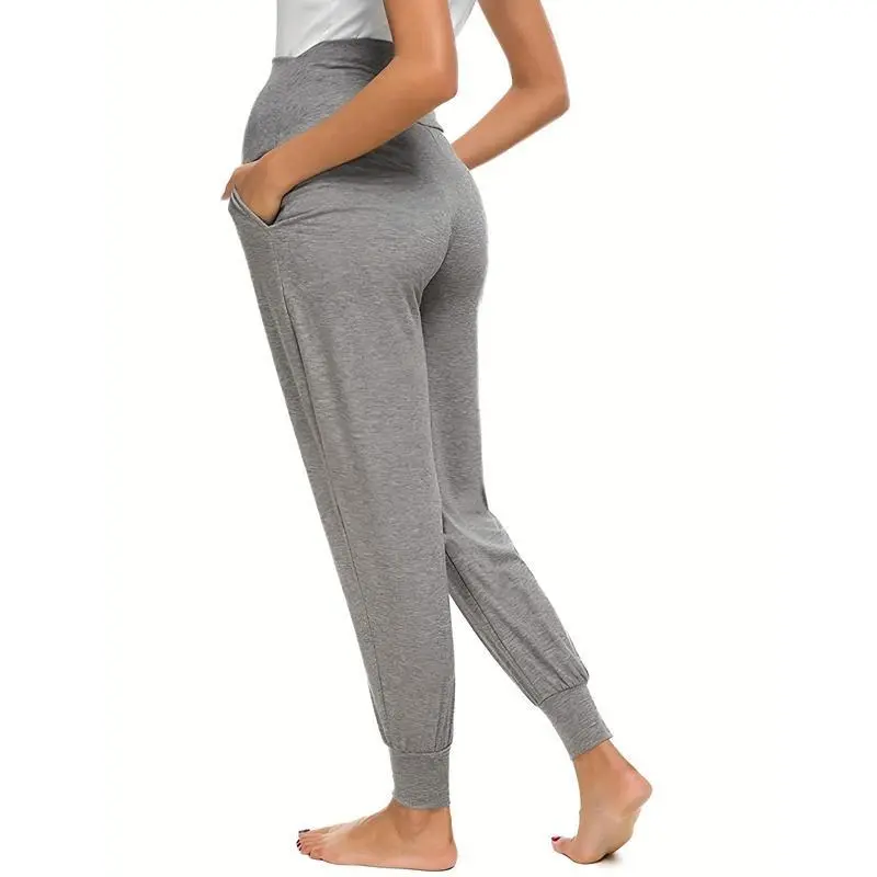 Comfy & Stretchy High Waist Tummy Support Maternity Loose Yoga Pants, Pregnant Women's Mid Stretch Joggers For Spring Fall