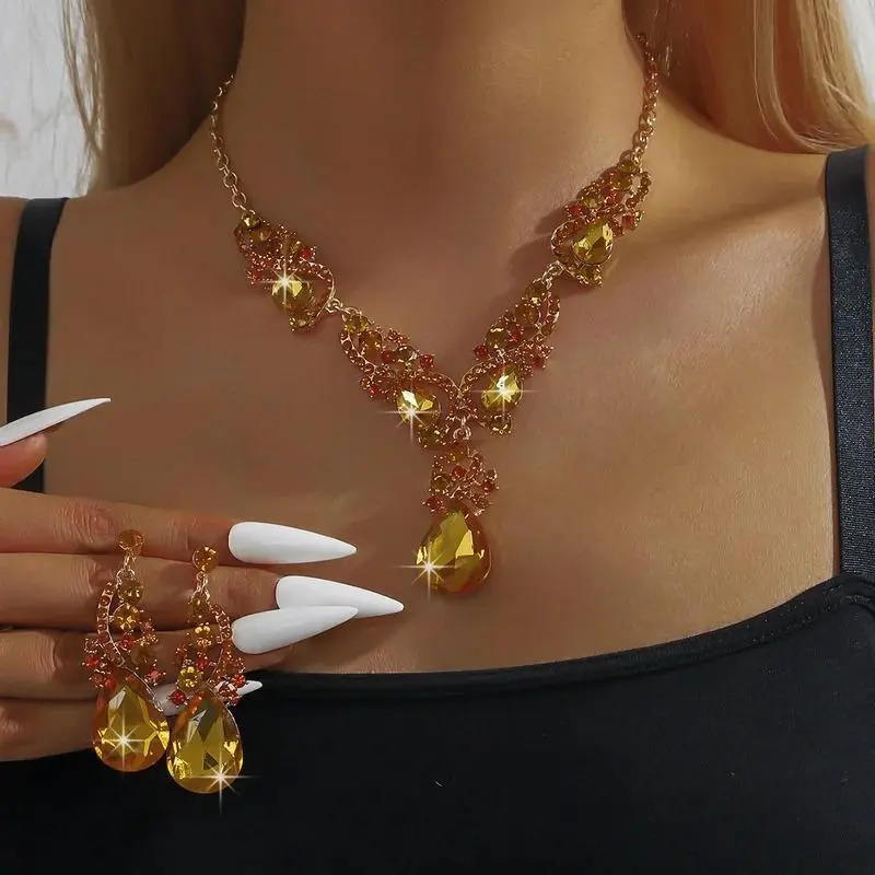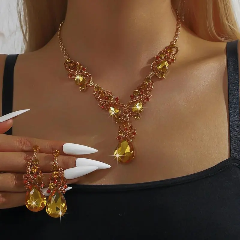 3pcs women's jewelry set with rhinestone crystal necklace earrings, bridal wedding accessories