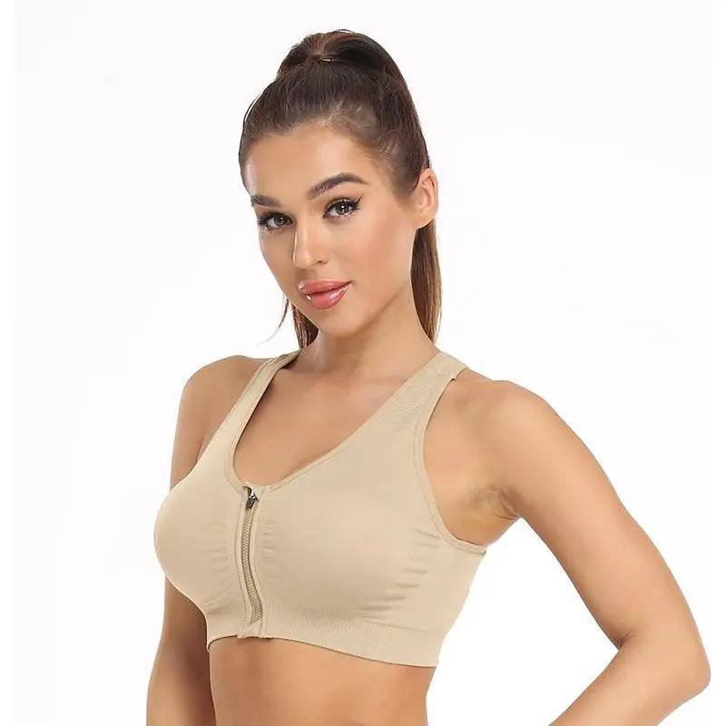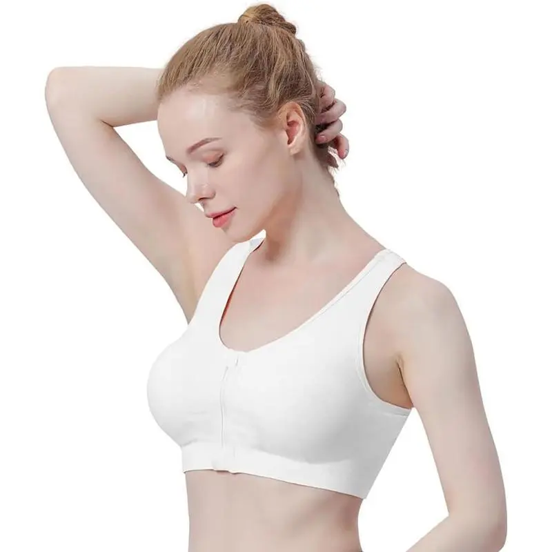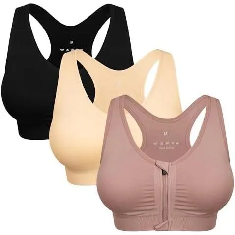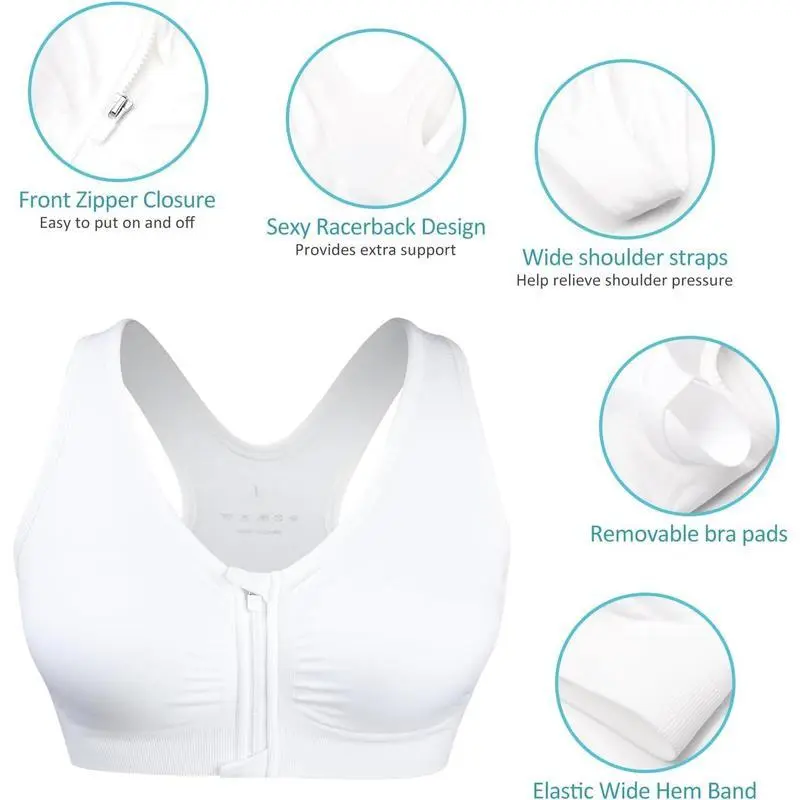 Zip Front Wireless Post Surgery Bra Comfortable sports bra is good for low medium impact activities -- This is a specially designed for Yoga Workout Gym Activerwear,and also good for sportswear, daily bras,sleeping bra,workout bra, running bra,lifting bra,before or after Pregnancy bras,sleep bra,post surgery bra. In response to customer feedback on the zipper, we have upgraded the zipper:Change to a better zipper brand; Self-Locking Zipper in Front-Easy to pull and lock without slipping,always stay in place; Protective Layer of Clothe Covers The Zipper-On the inside to prevent scratching your skin. Zipper Front Sports Bra Features: These Zip Front Post-Surgery bra with front zip cloure-easy to put and off; Sexy Racerback design, can relieve the pressure on the body and offer a extra back support;Removable pads for the bra portion can be removed when you need wash. Zip Bra Size Chart: Easy on and Easy off make it easier and more convenient for you to exercise Use high quality zippers, which will not slide down With anti-scratch design to avoid scratching skin No underwire,classic racerback design The fabric is comfortable and breathable The video showcases the product in use.The video guides you through product setup.The video compares multiple products.The video shows the product being unpacked. Soft and Comfortable, Easy to Wear Anytime, Anywhere. This seamless zipper bra is suitable as post-surgery bra,and it is also Perfect for low/medium impact activities, like Gym Exercise, Fitness, Yoga, Walking, Jogging, Running, Cycling or everyday use. More Styles for Choice Ribbed Cross Back Bra Add to Cart Seamless Workout Shirts Add to Cart Racerback Sports Bra Cross Back Sports Bra ✔ ✔ ✘ ✔ ✔ Feature1 Criss-cross Back Crew Neck Crew Neck Racerback Criss-cross Back Feature2 Ribbed Thumb Holes Compression Soft High Elasticity Suggest for Yoga, Athletic Yoga, Athletic Yoga, Athletic Yoga, Athletic Yoga, Athletic