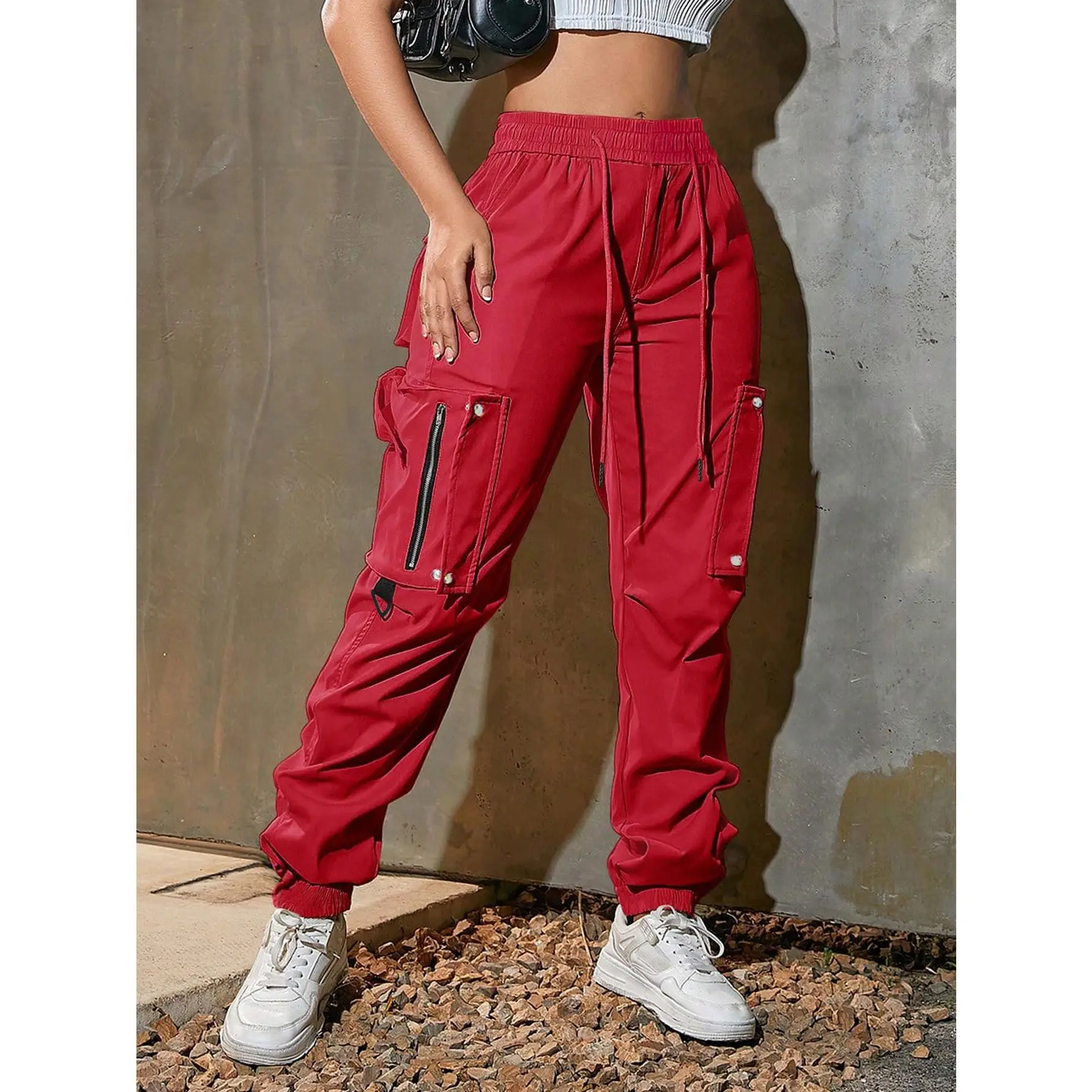 Composition: 100% Polyester Length: Long length Pattern: Solid color Applicable People: Adult Type: Cargo Pants Pant Length: Long length Operation Instruction: Hand wash or professional dry clean Occasion: Weekend Casual Closure Type: Elastic Waist Other Material: Polyester Fit Type: Regular Fabric Elasticity: No Elasticity Printing Type: No Printing Weaving Method: Woven Item ID: QX295411