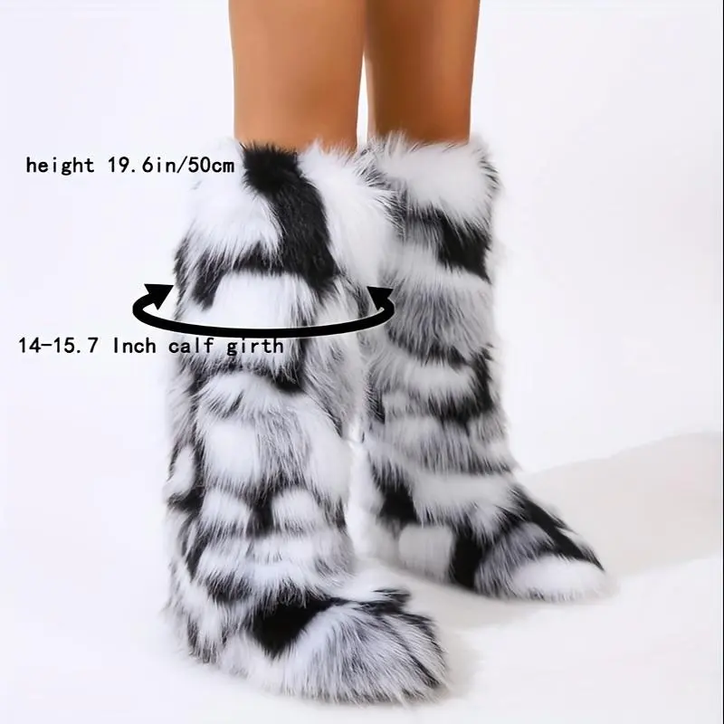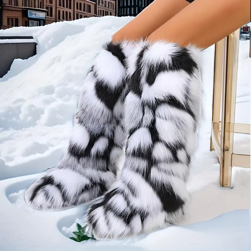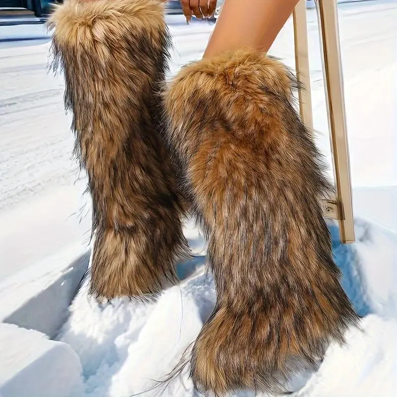 Women's Solid Color Snow Boots, Fashion Faux Fur Knee-High Boots, Women's Comfortable Boots