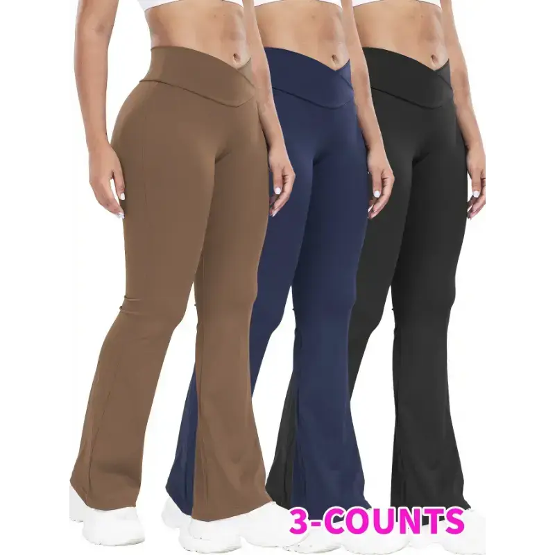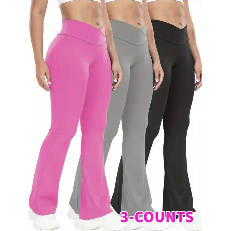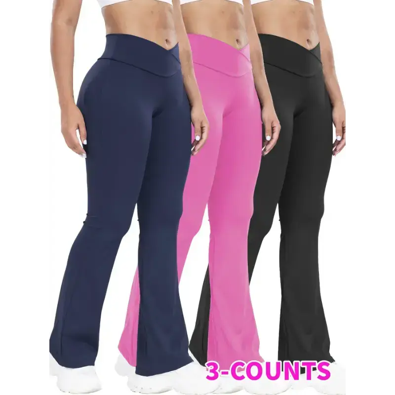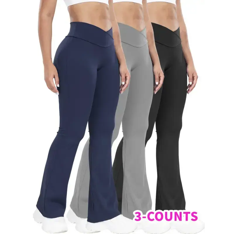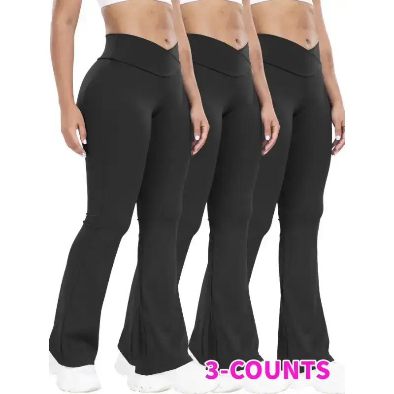 Stretchy 3-Pack High-Waisted Yoga Pants for Women - Nylon 75% Elastane 25% Flare Leg Sports Tights - All-Season Knit Fabric Workout Fitness Leggings with Tummy Control and Butt Lifting Design