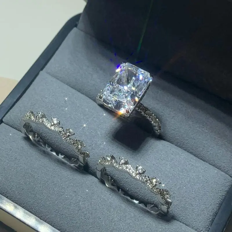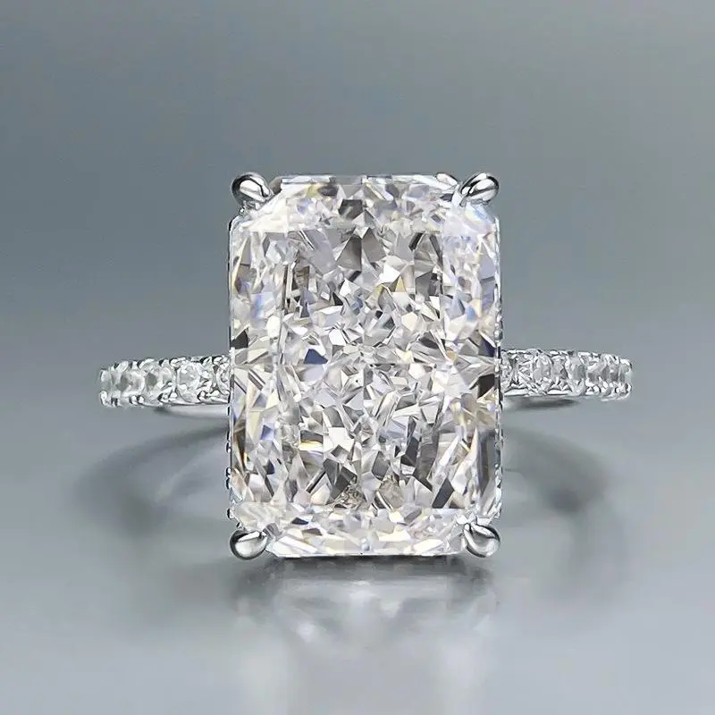 S925 Sterling Silver Ice Flower cut rectangular ring 9*13mm 8A cubic zirconia ring fashion jewelry accessory woman girl promise ring-155(68%)
