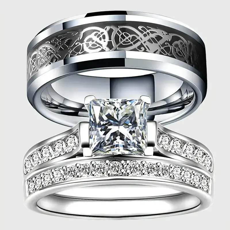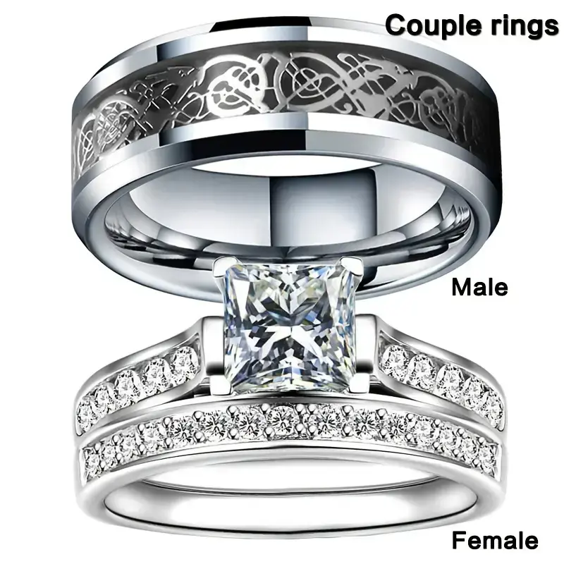 Fashion Couple Engagement Ring Suit Women's Wedding Stainless Steel Ring Men's Valentine's Day Gift