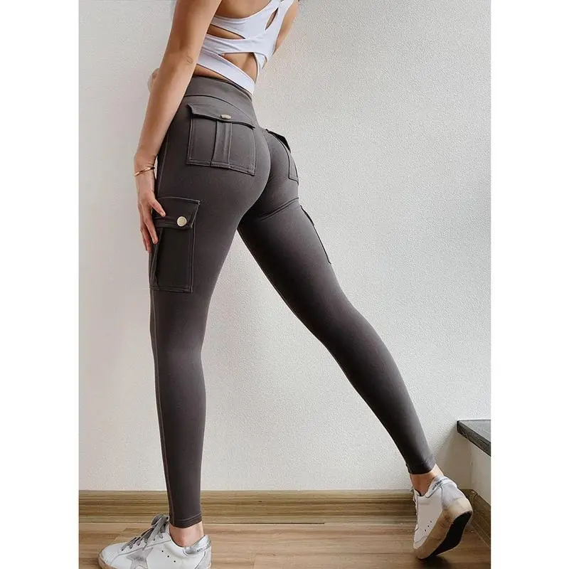 Gym Outfits Women's Elastic Tight Sexy Sports Pants High Waist Quick-Dry Running Pocket Butt-Lifting Long Pants Crossover Yoga Leggings Pilates Leggings Yoga Clothes Set Seamless Body Legging