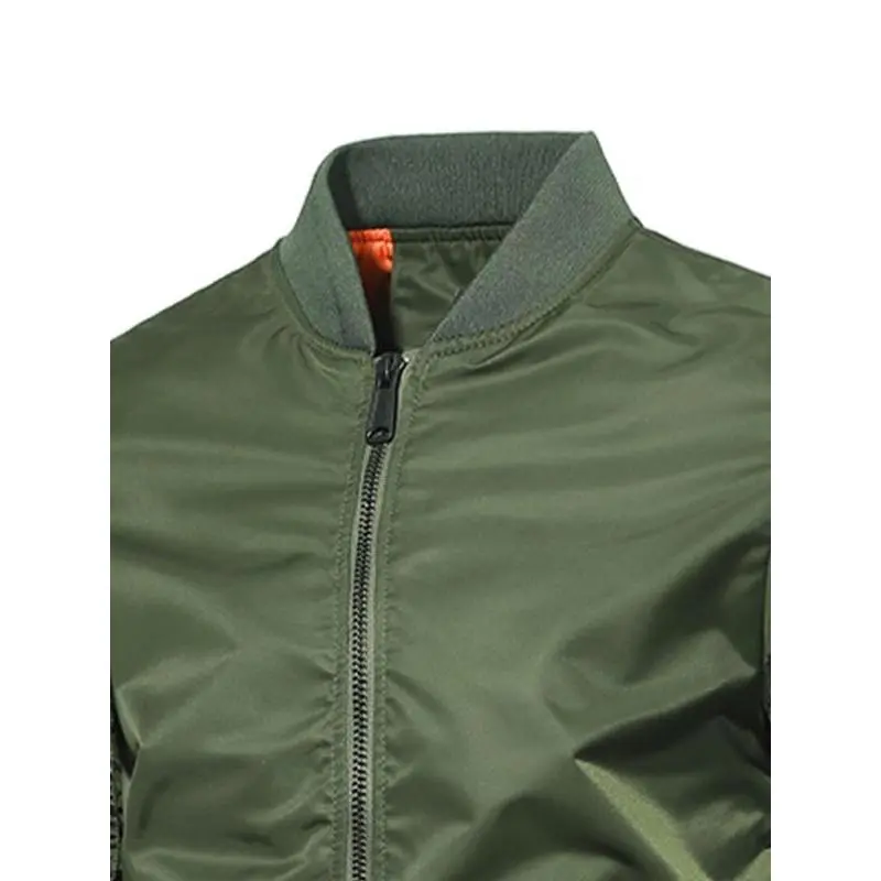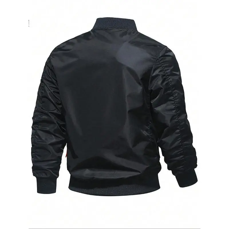 Men's Regular Fit Solid Zip Up Bomber Jacket, Casual Baseball Collar Long Sleeve Outerwear for All Seasons, Fashion Men's Clothes for Daily Wear