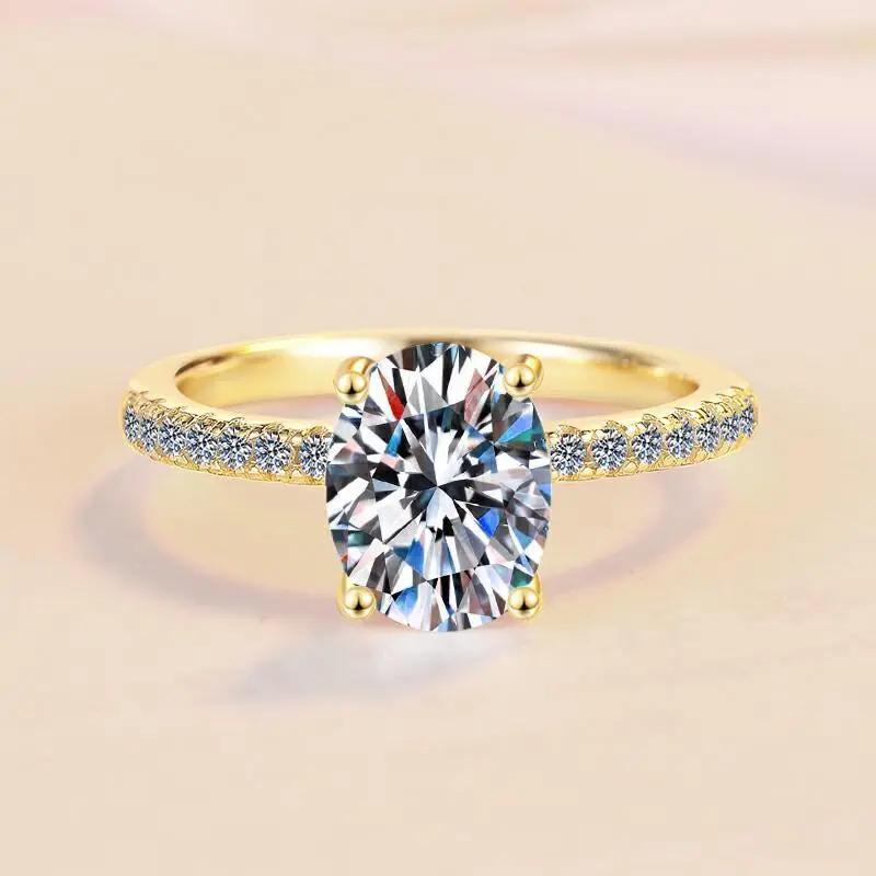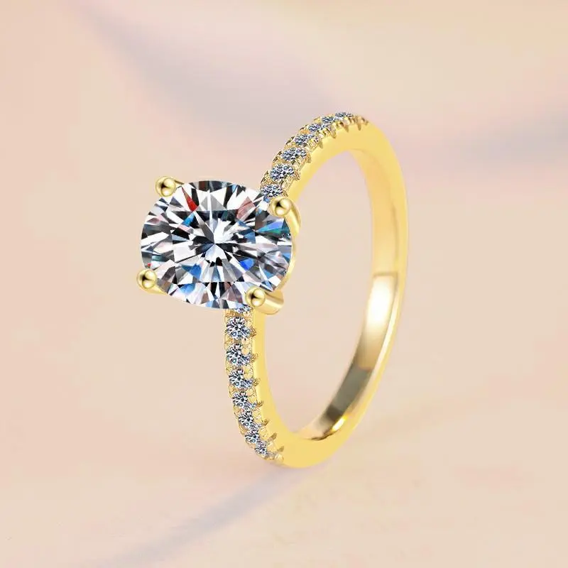 S925 Sterling Silver Four-claw Golden Ring Synthetic Moissanite Ring-120(68%)