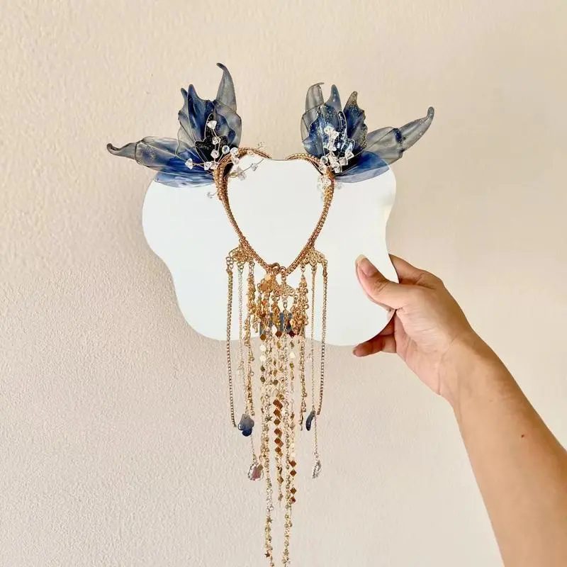 Ancient style Handmade Mermaid Hanfu hair accessory tassel hair crown gold hair crown blue-black set fairy-tale style film photography Hanfu hairpin set costume accessory 2025 Halloween Cosplay Tiara Jewellery