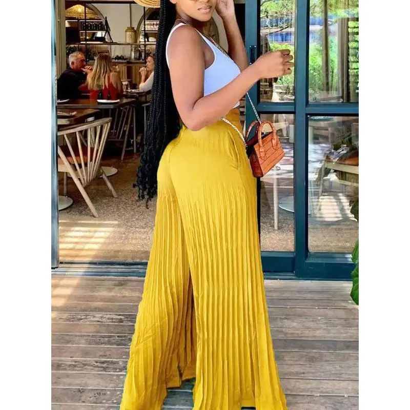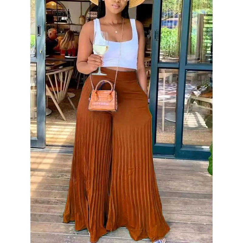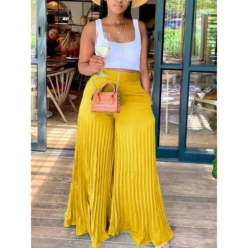 Women'sPocketPleatedWideLegPants,CasualHighWaistTrousersforSpring&Fall,GoingOutBottoms,Women'sBottomsforDailyVacationParty,Womenswear