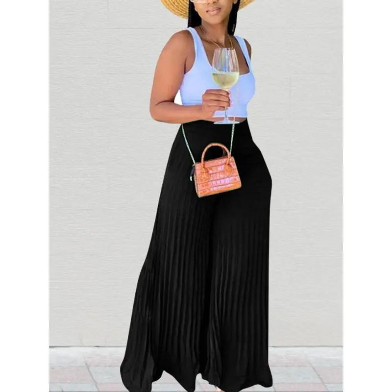 BTFBM Women Casual High Waist Wide Leg Pants Summer Floral Solid Long Palazzo Pants Lounge Beach Trousers with Pockets #Outdoorfun