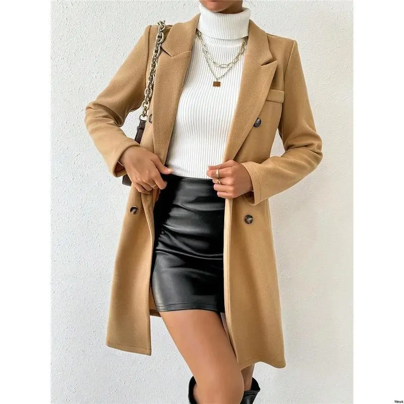 Woolen Collar Lapel - Women PETITE tiktok s Double Breasted Coat