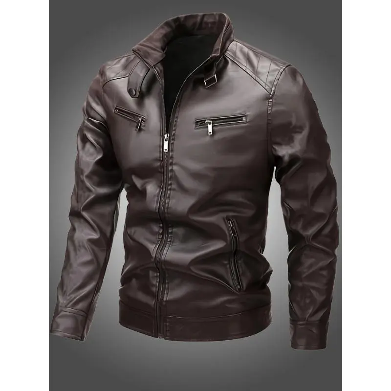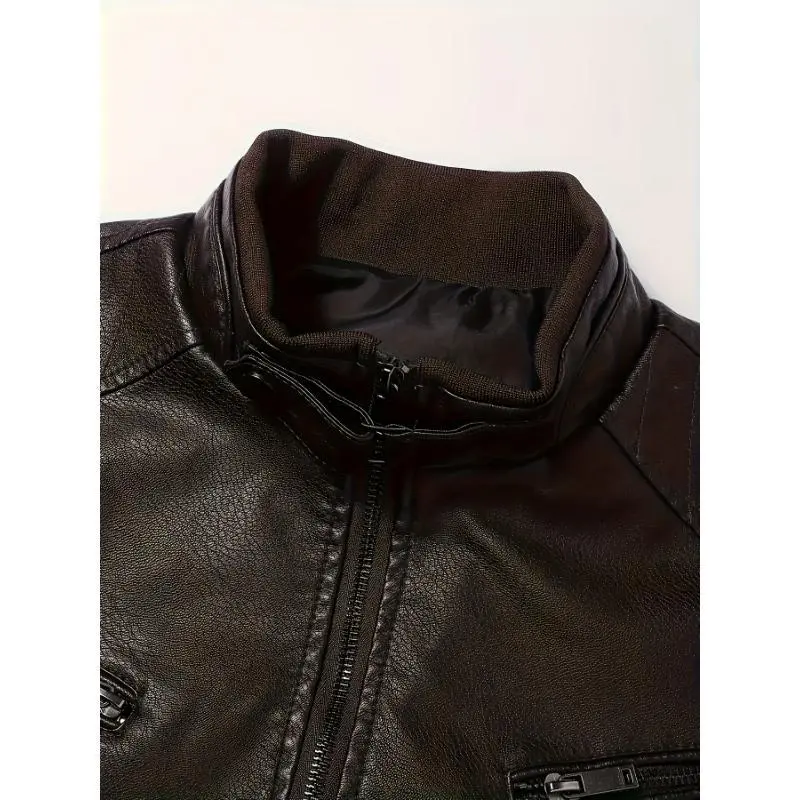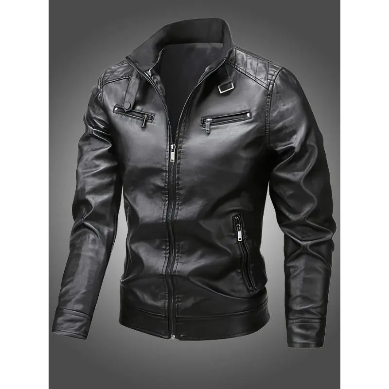 Men'SFauxLeatherMotorcycleJacketforSpringAndAutumn,CasualRidingOuterwear.TopsSleeve
