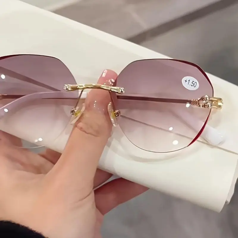 Lady's Reading Glasses Rimless Presbyopia Eyeglasses Eyewear +1.0+1.5+2.0+2.5+3.0+3.5+4.0 Golden