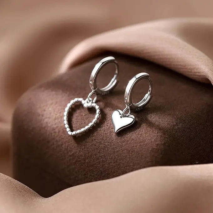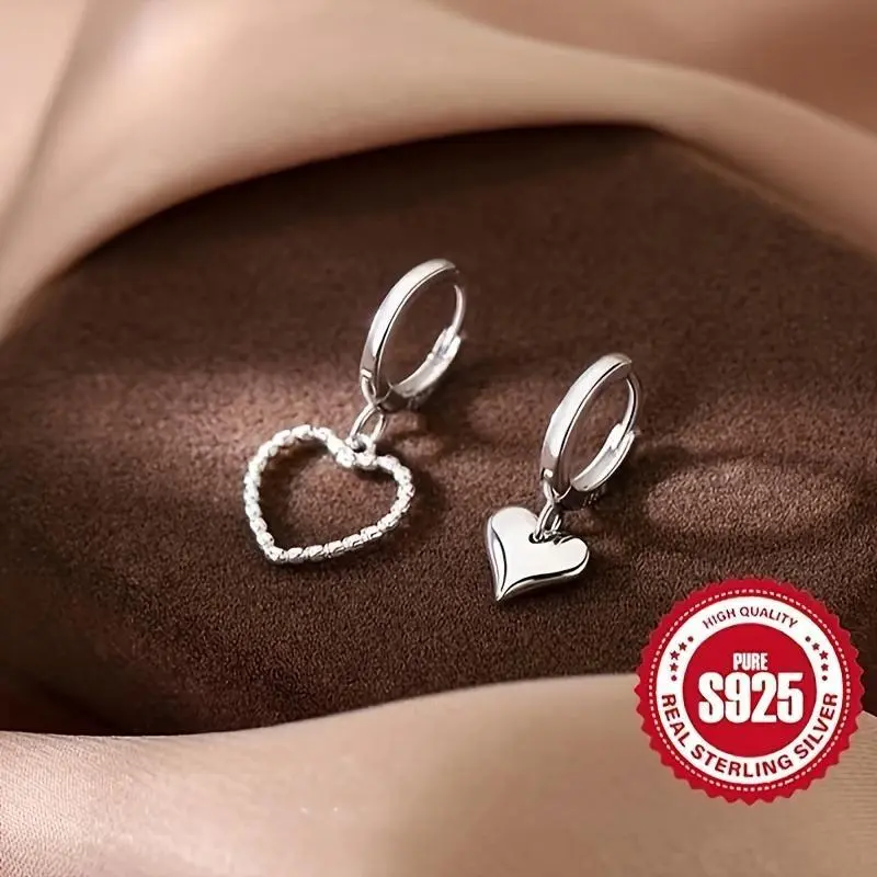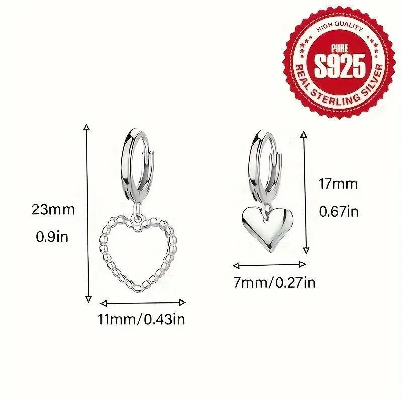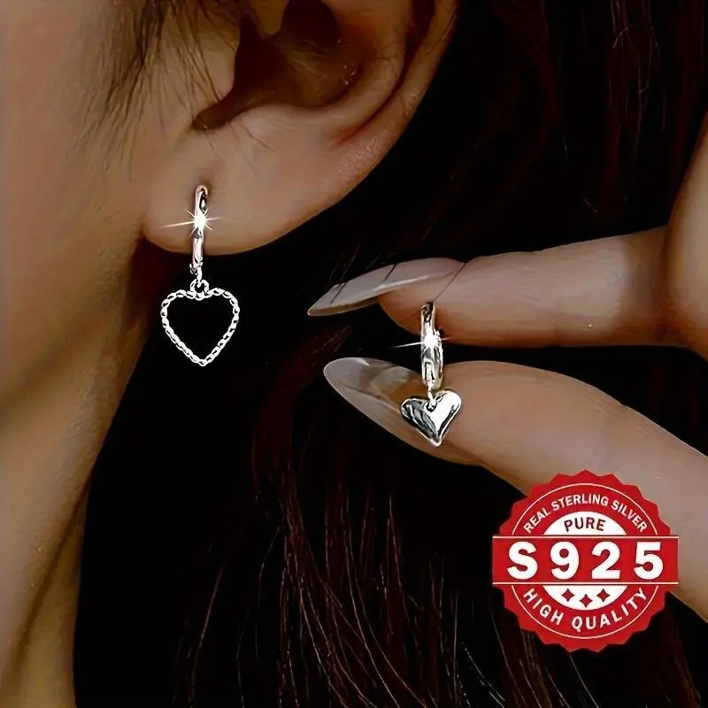 2 Pairs S925 Silver Heart Pendant Earrings - Hypoallergenic | Daily/Party Gift for Her