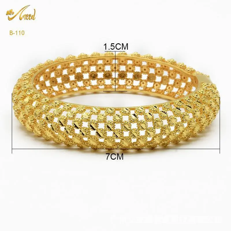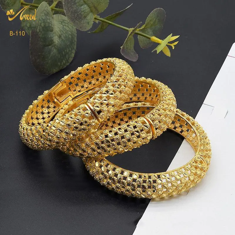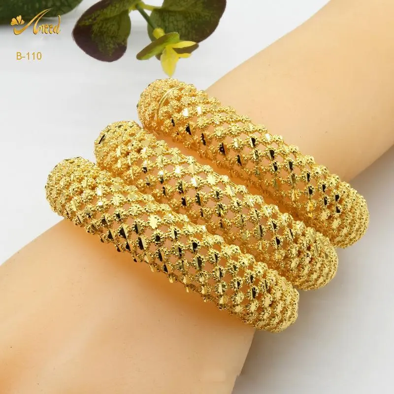 2 Pieces/ lot Dubai Bride 24 K Alloy Copper Open Bracelet Nigerian Arab Women Wedding Gold Cuff Bangles Styling Tips