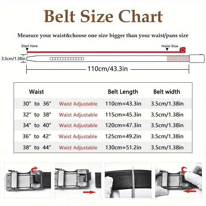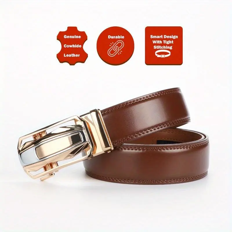 2pcs Genuine Leather Ratchet Belt for Men - Adjustable Automatic Buckle, Versatile Casual Business Style, Durable Alloy Buckle, High-Quality Leather Panel, Easy to Wear And Suitable for Any Occasionvalentine'S Day-