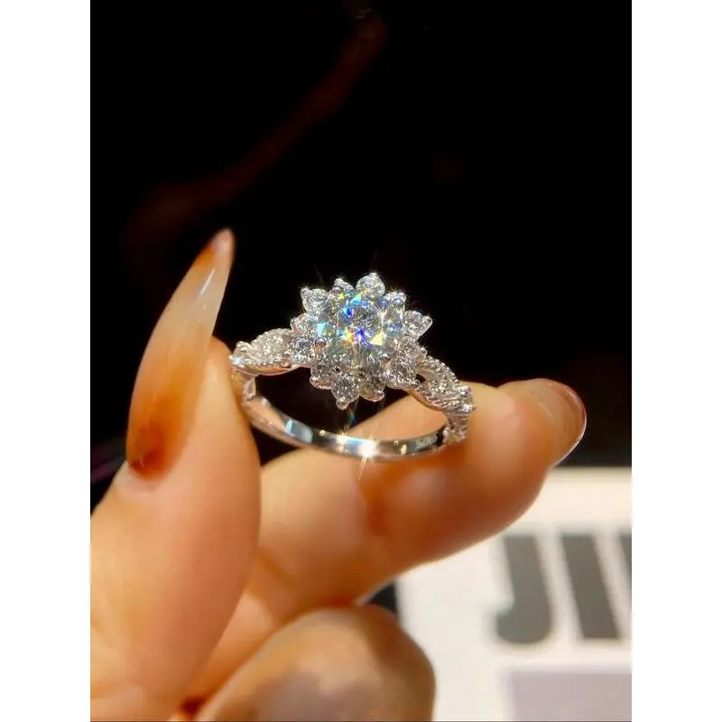 S925 Sterling Silver Eternal Snowflake Design Synthetic Moissanite Engagement Ring, Luxury Shining Ring for Women, Fine Jewelry for Party, Daily Decor