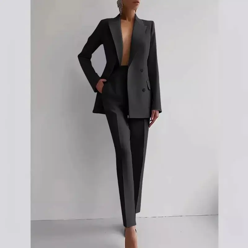 office blazer pants two piece set womne fashion buton suit coats two piece sets autumn winter fashion casual solid pant sets