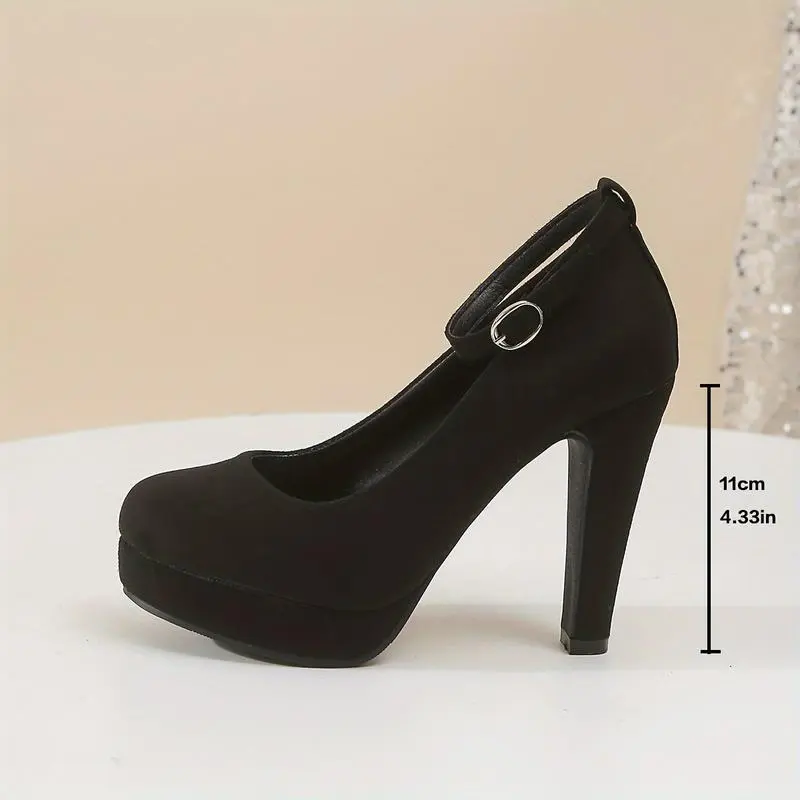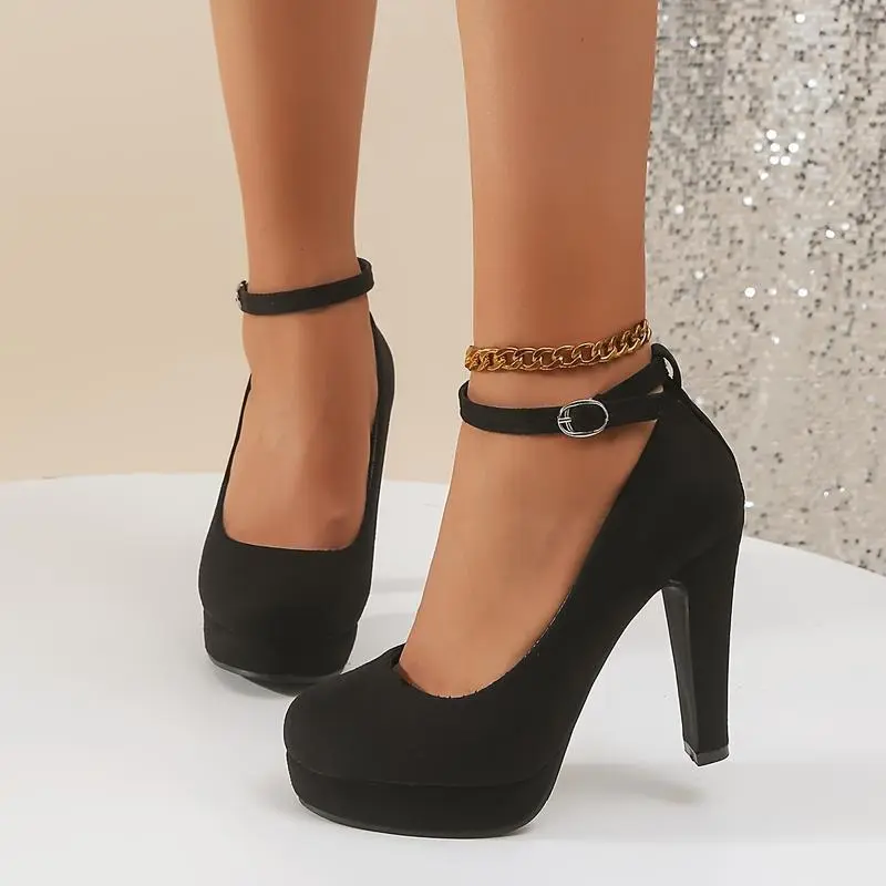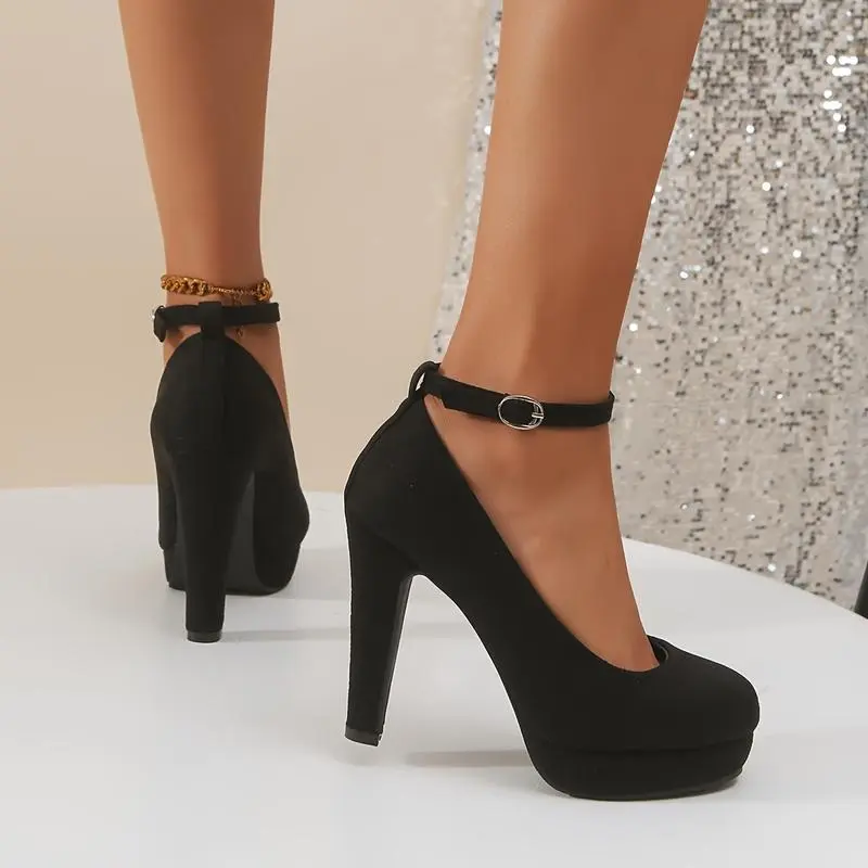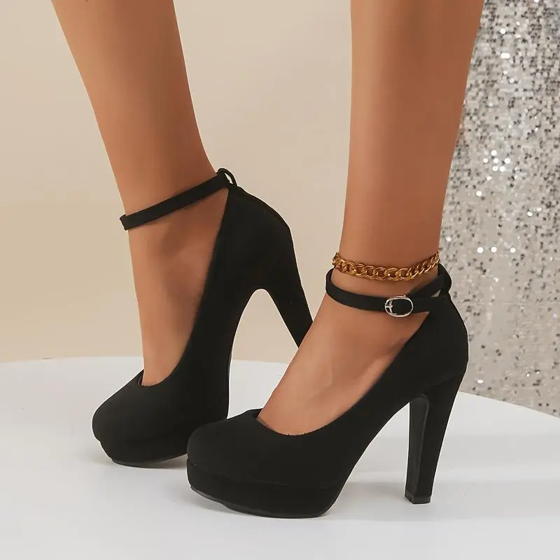 Women'sPlatformSuperHighHeels,All-MatchBlackAnkleStrapPumps,ElegantEveningDressShoes