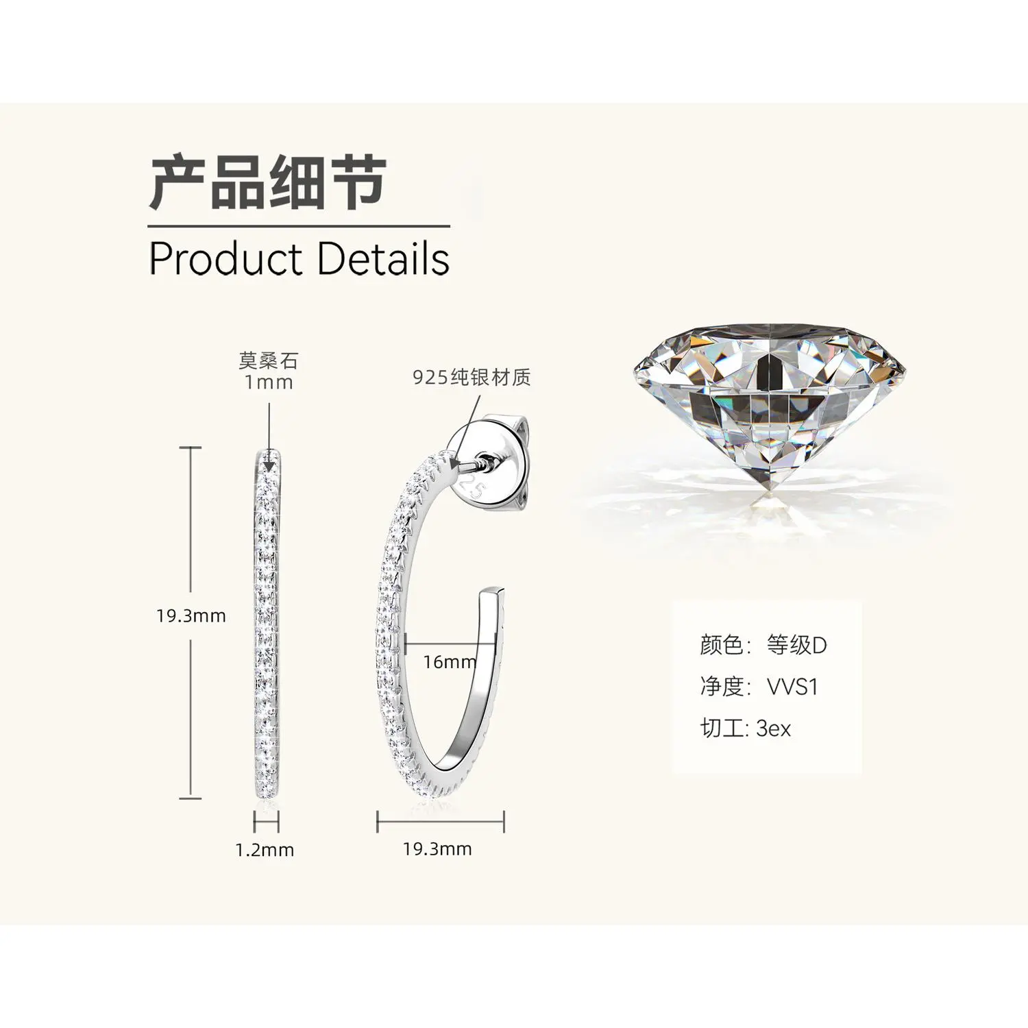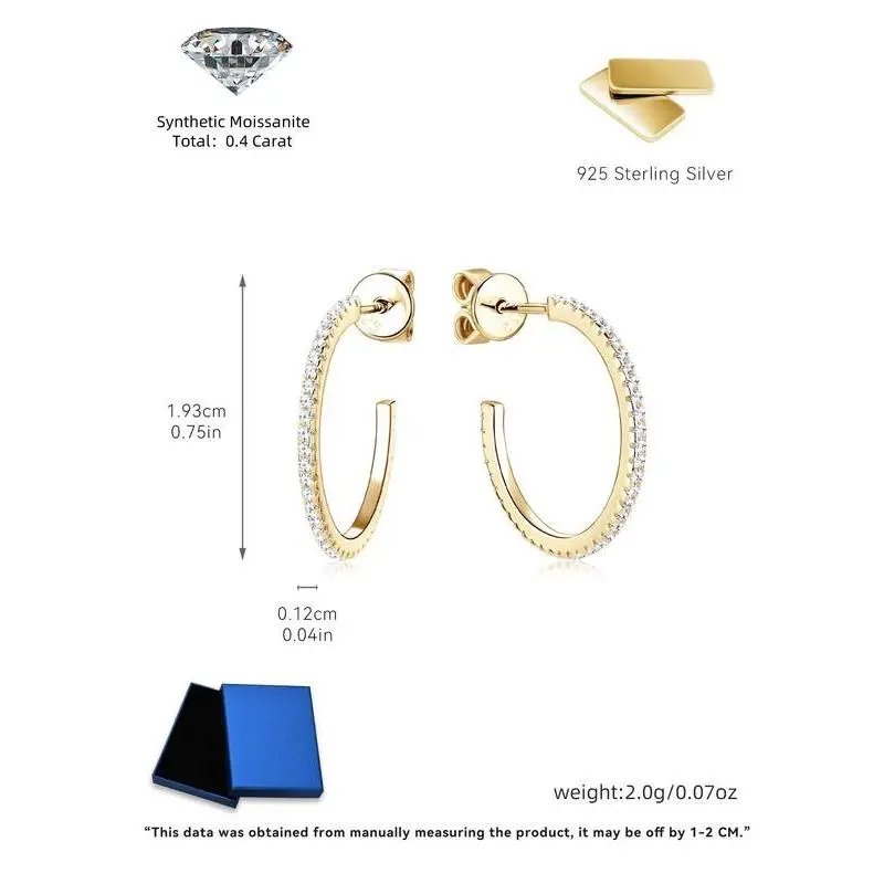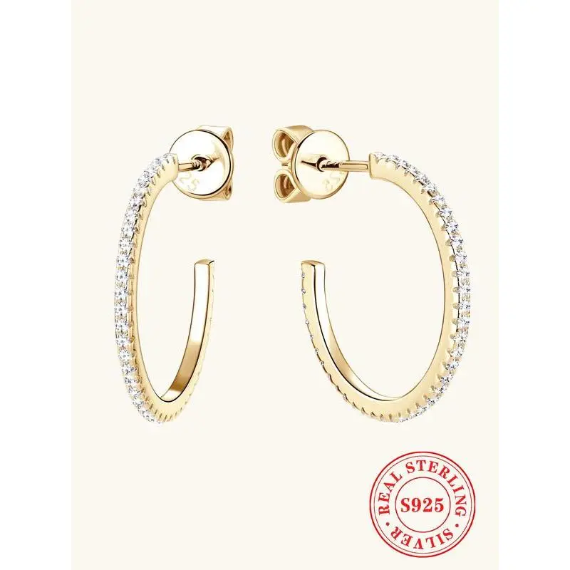 S925 Sterling Silver Synthetic Moissanite Hoop Earrings, Fashionable Earrings for Women & Girls, Trendy All-match & Exquisite Jewelry for Birthday Gift