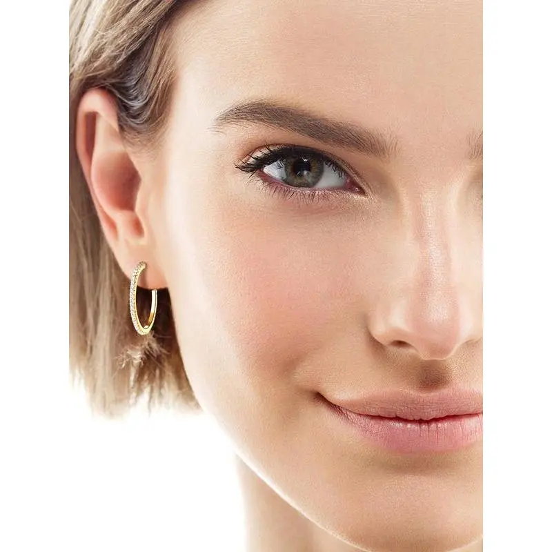 Cate & Chloe Bianca 18k White Gold Plated 25mm Hoop Earrings for Women – 34 Simulated Diamond Crystal Hoops – Hypoallergenic, Lead & Nickel Free Lightweight Earrings with Secure Latch Back – Premium Gift Box Included, American Owned Brand