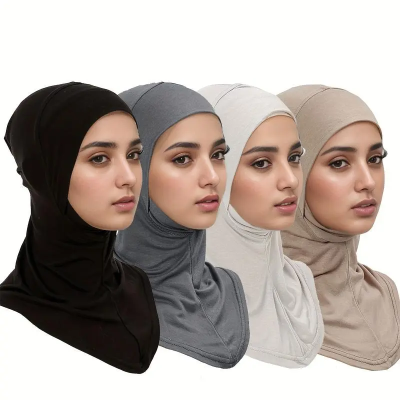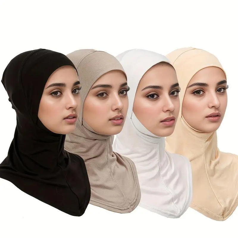 4pcsSolidColorBaseCaps,ElegantChin-CoveredInnerHijabCap,BasicNeckCoverUndercapsForWomenForEid