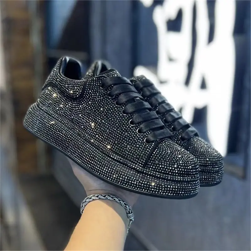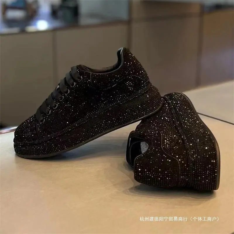 2025SpringNewTrendyBrandLow-TopRhinestoneSneakersforMen,SolidColorStylishLace-UpVersatileCasualDadShoesBoyAthletic