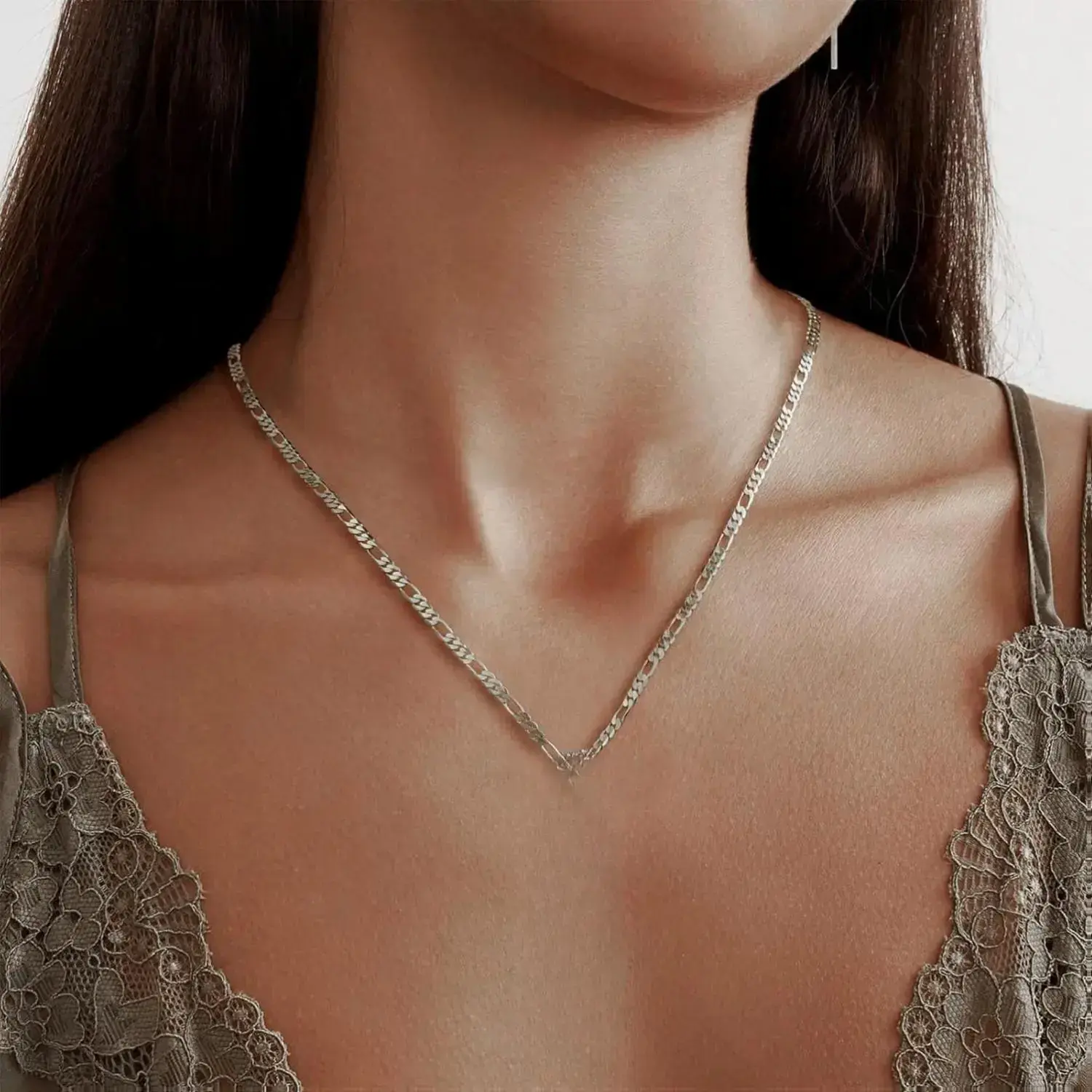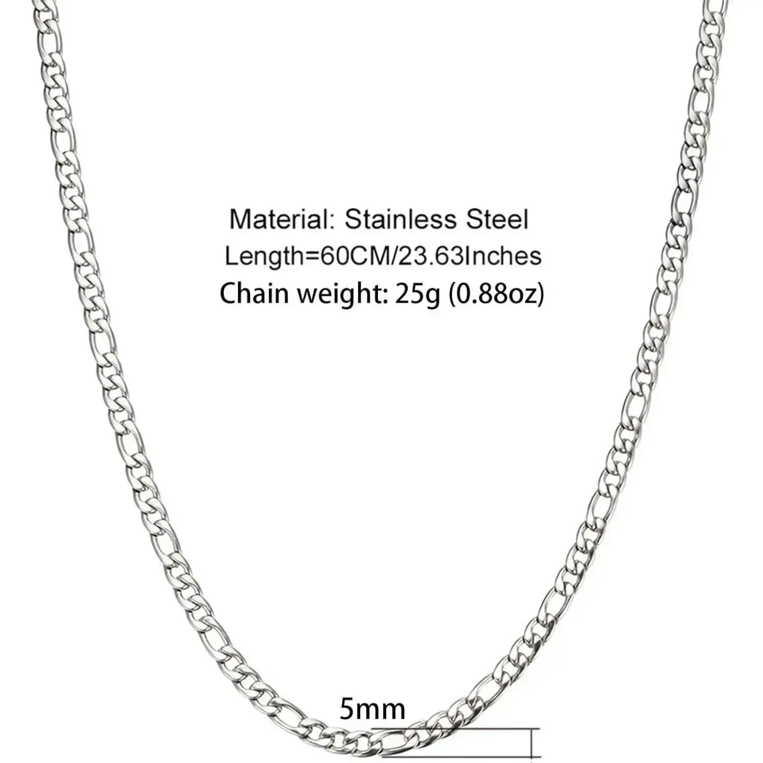 HIGH-QUALITY MATERIAL: This product is made of stainless steel, after silver plating process, Polishing process to finish round and smooth, stainless steel jewelry will not deform or fade, suitable for daily use. PRODUCT SIZE : The set includes 1 pendant, 1 Figaro chain, the chain length: 23.63 in, Pendant 3.14 in Length 1.06 in Width , suitable for most people.