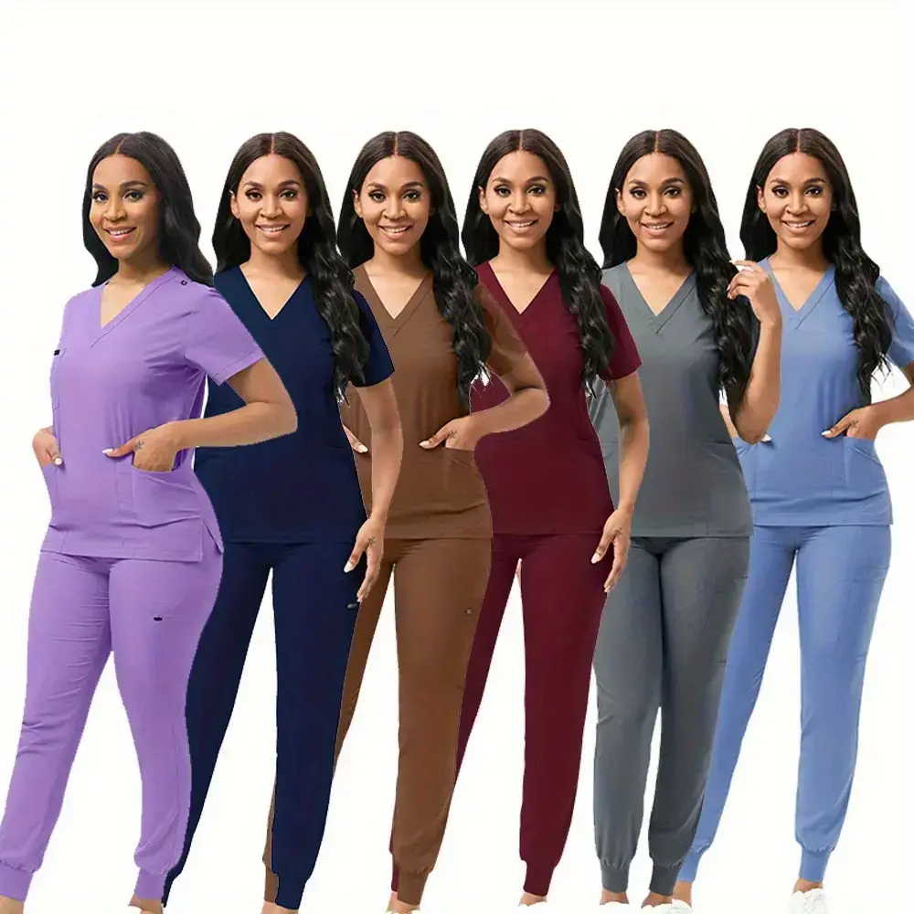 2 Pieces Pet Clinic Nurse Workwear Set, Unisex Frosted Scrubs, Available in Multiple Colors for Women