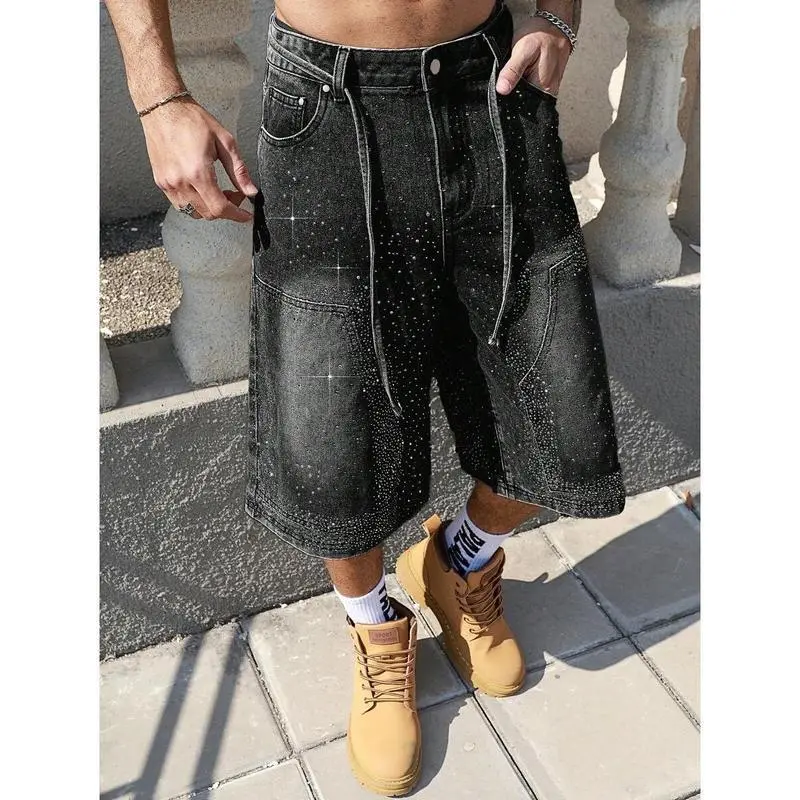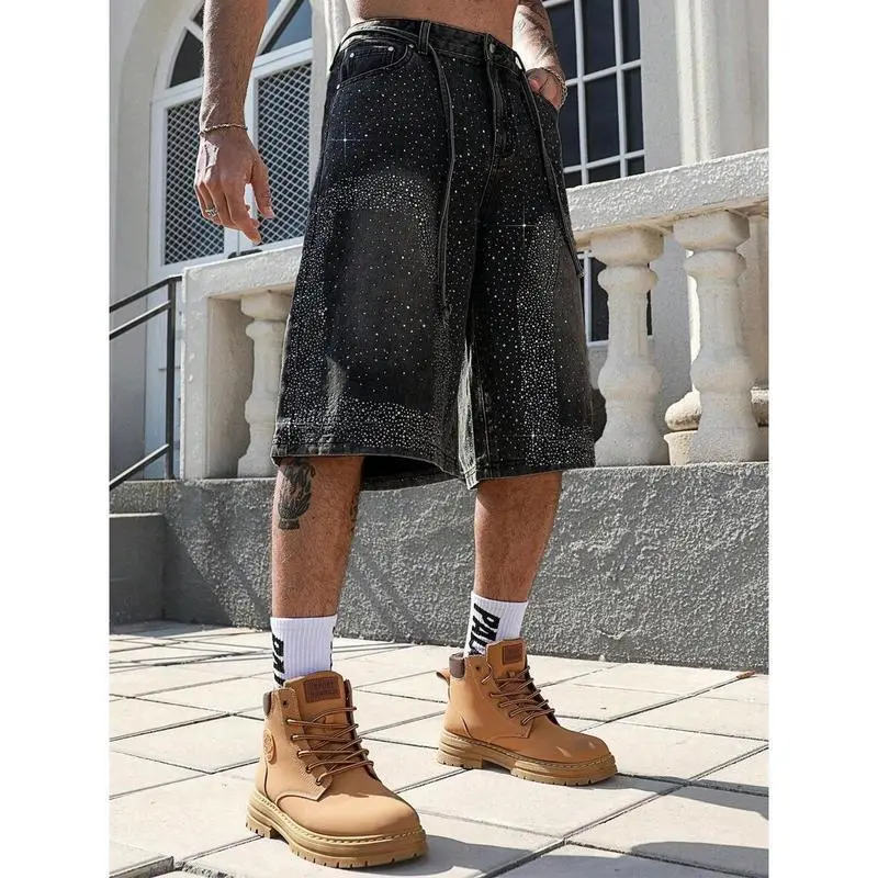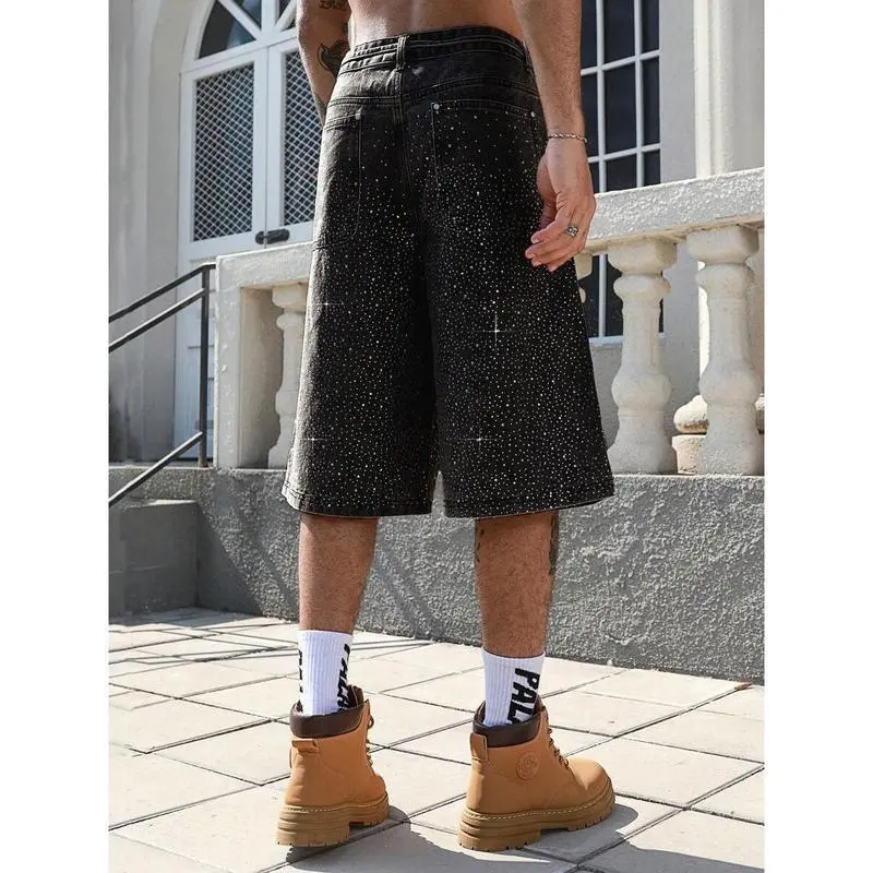 Men'sSparklingDiamondEmbellishedDenimBermudaShortsJorts