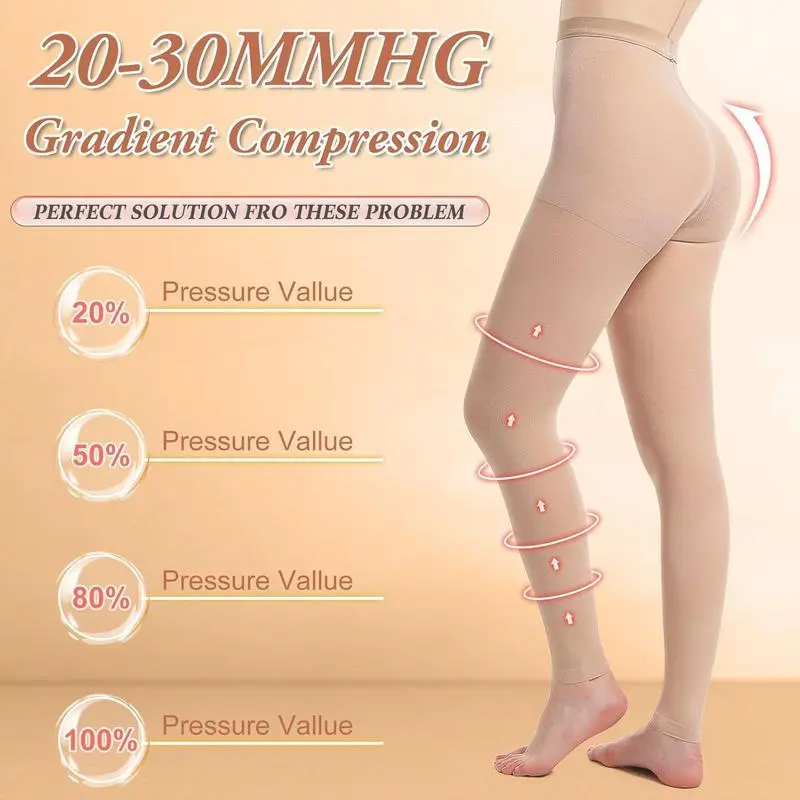 1 Details2 compression & Footless3 Shaping & comfortable4 High waist & Elasticity The video showcases the product in use.The video guides you through product setup.The video compares multiple products.The video shows the product being unpacked. 20-30MMHG compression tights high waist footless Merchant Video