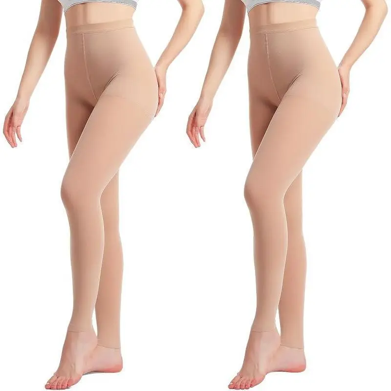 Medical Compression Pantyhose for Women, 20-30mmHg Graduated Support Tight Pants, Opaque Footless Waist High