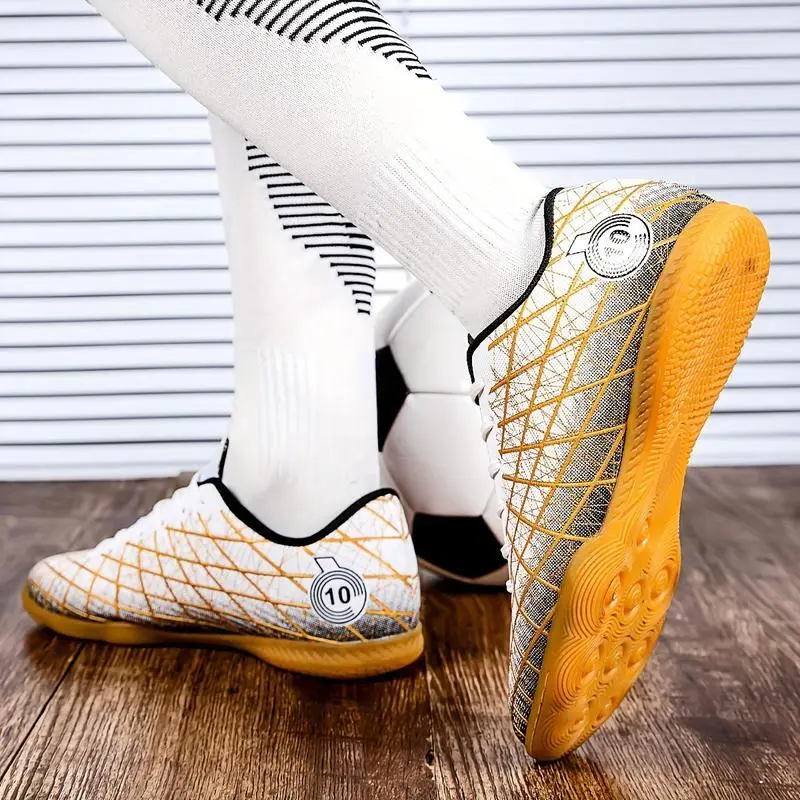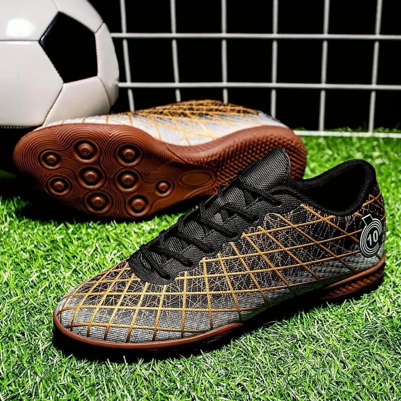 Men's Soccer Shoes Flat Lace-up, Indoor/Outdoor Cement Wooden Floor, Lawn Professional Soccer Training Shoes, Youth Five-a-side Sports Shoes, Breathable, Wear-resistant, Non-slip, Unisex Style