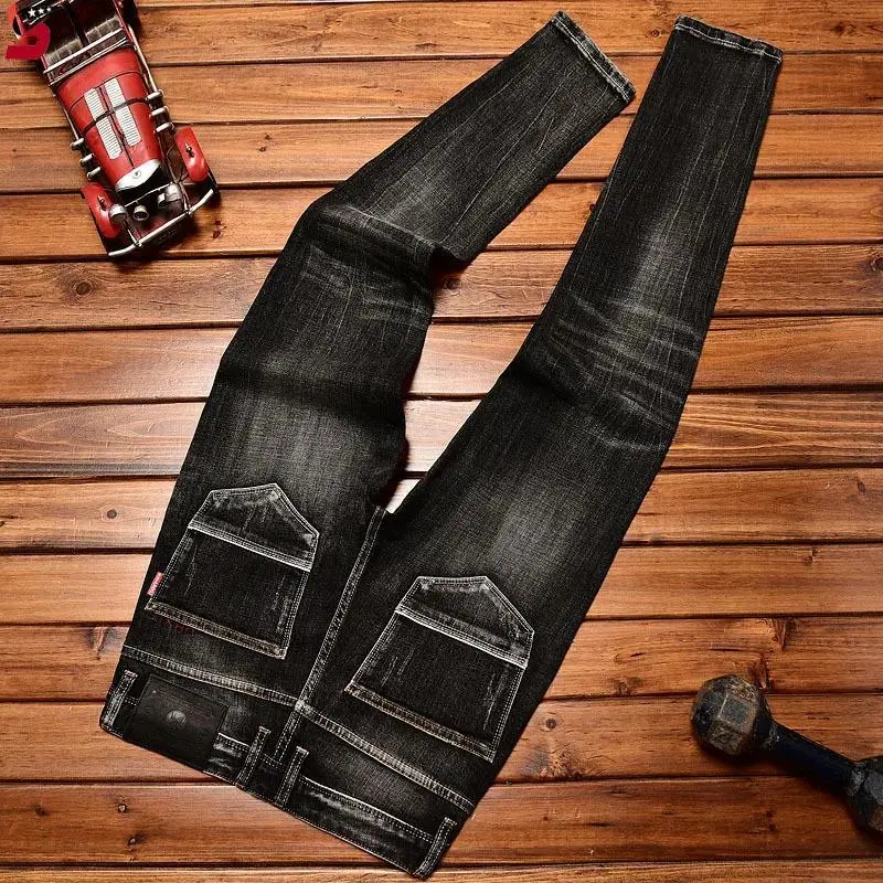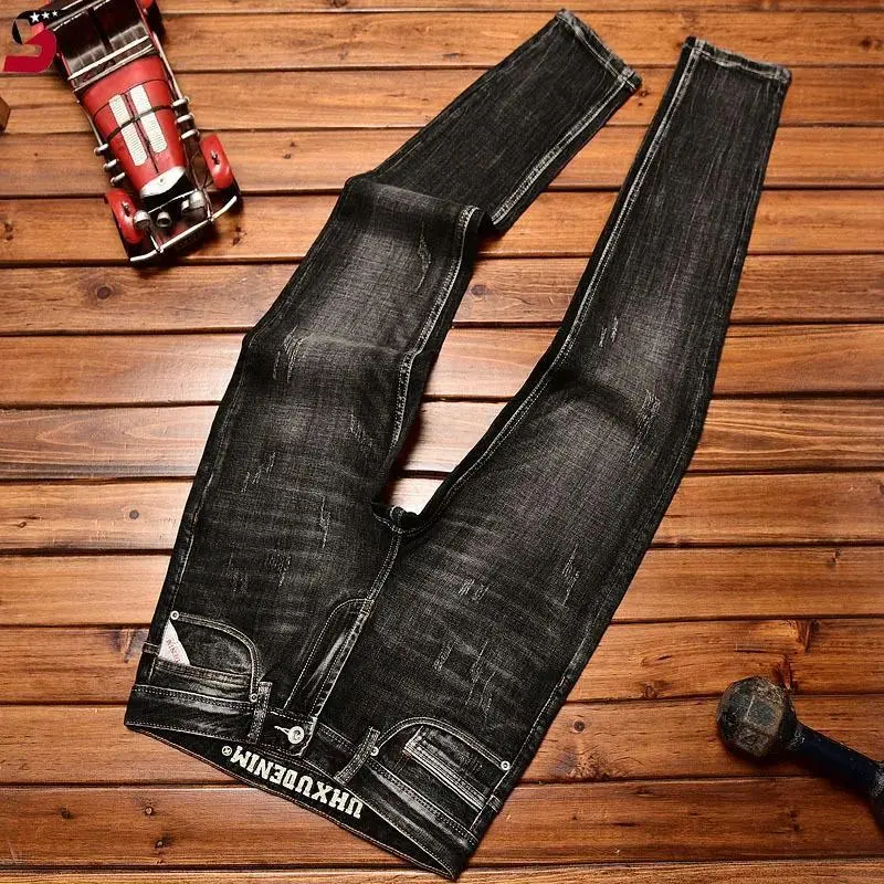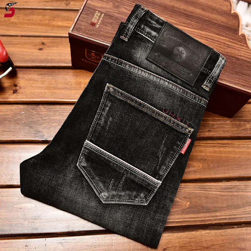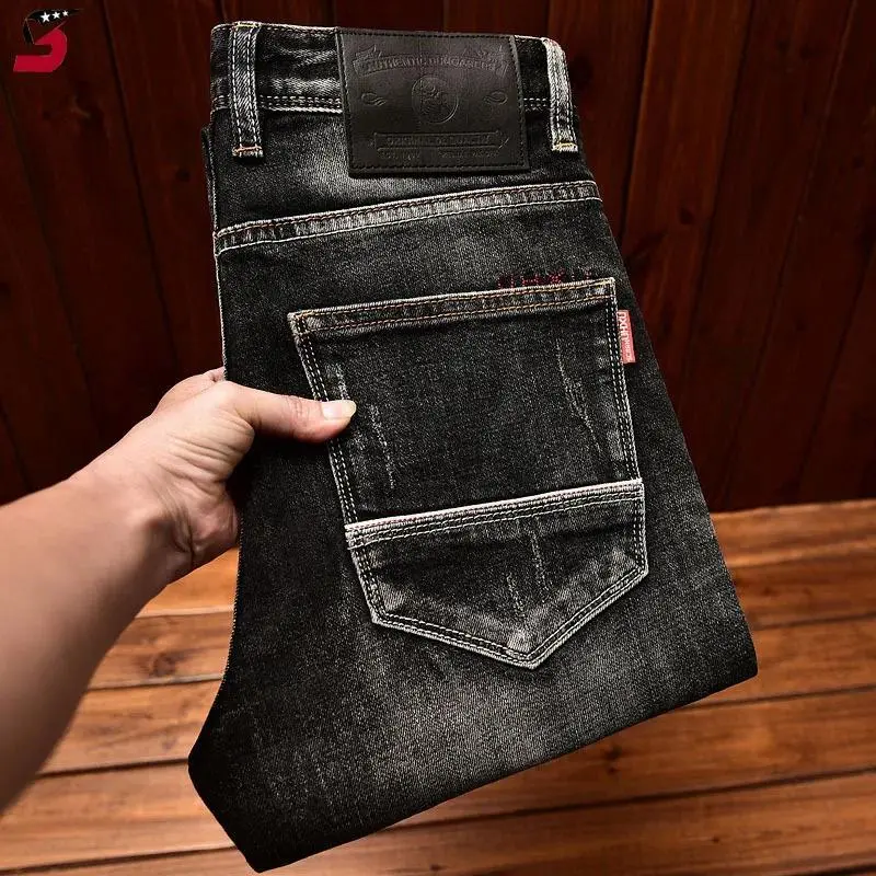 High-End Black Trend Jeans Men's 2024 NEW Autumn and Winter Stretch Slim Straight Fashion Casual Classic Denim Trousers