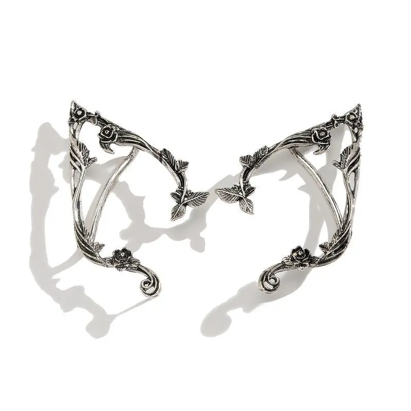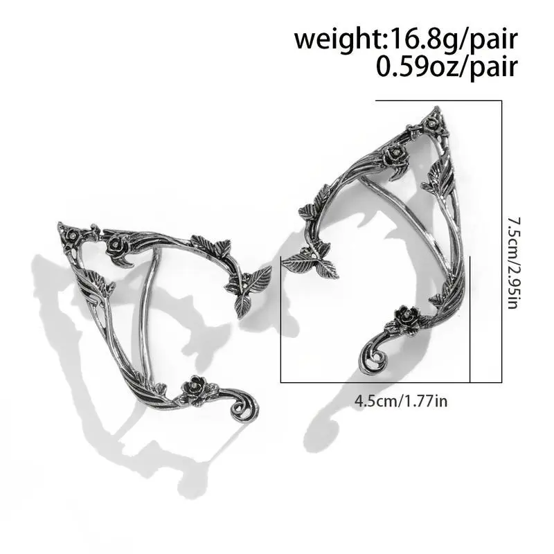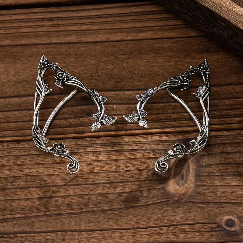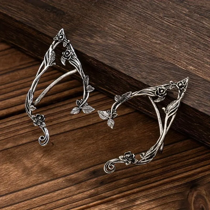 1PairVintageFloralFairyEarCuffs-HandmadeAlloy&IronFantasyPartyForWomen,IntricateFlower&ButterflyDesign,MusicFestival&CosplayAccessories,PartyAccessories|VintageFairyEarrings|AlloyConstruction.