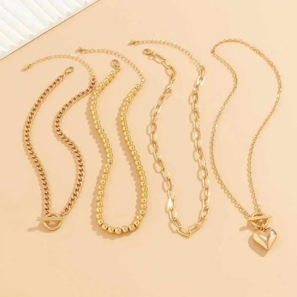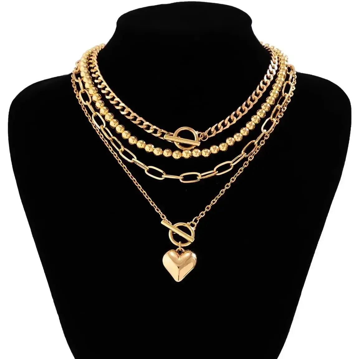 Layered Gold Necklace for Women Non Tarnish Chunky Gold Necklace Stack for Women Paperclip Chain Necklace for Women Retro Coin Medallion Heart Pendant Necklace Gold Jewelry Set