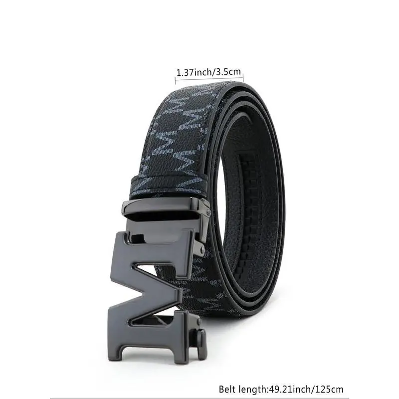 Men's Letter Design Automatic Buckle Belt, Fashion Belt for Party, Daily Clothing Decor, Trendy All-match & Exquisite Belt for Birthday Gift
