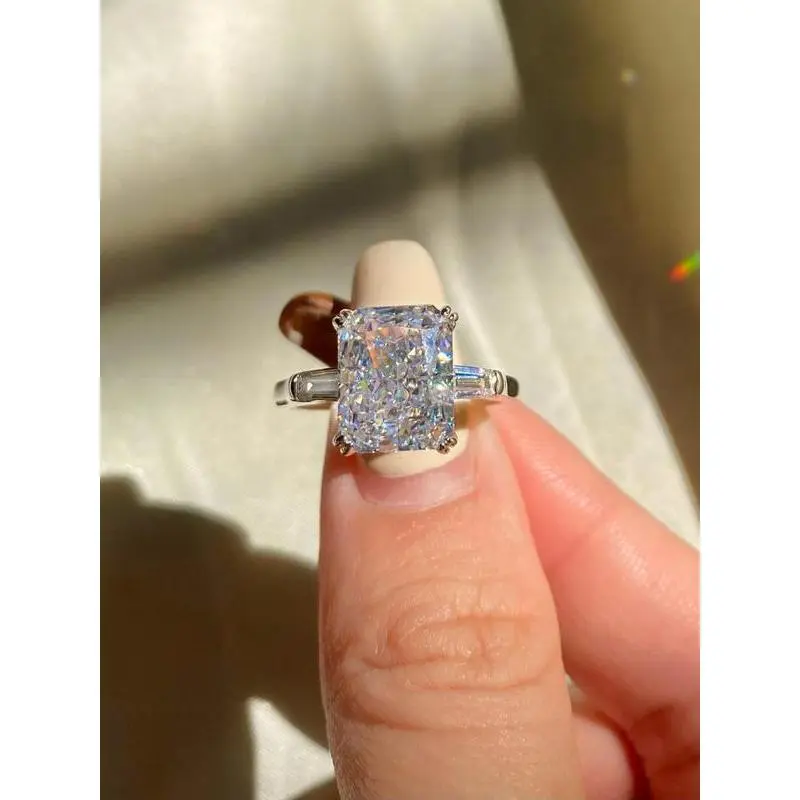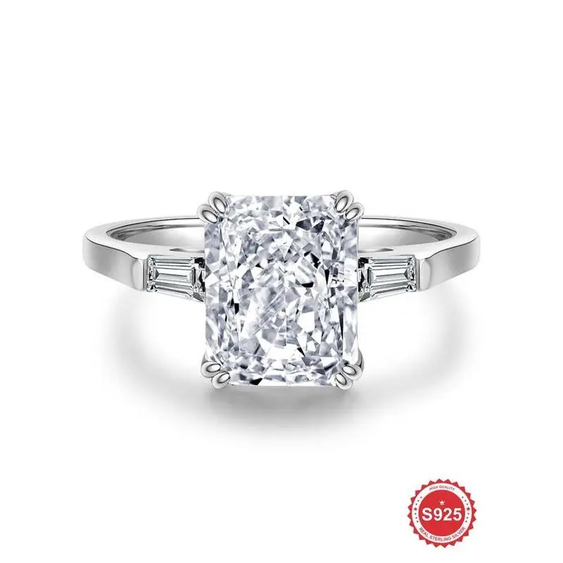 S925 Sterling Silver Square Shaped Zircon Engagement Ring, Luxury Promise Wedding Ring, Fashion Jewelry Accessories for Women