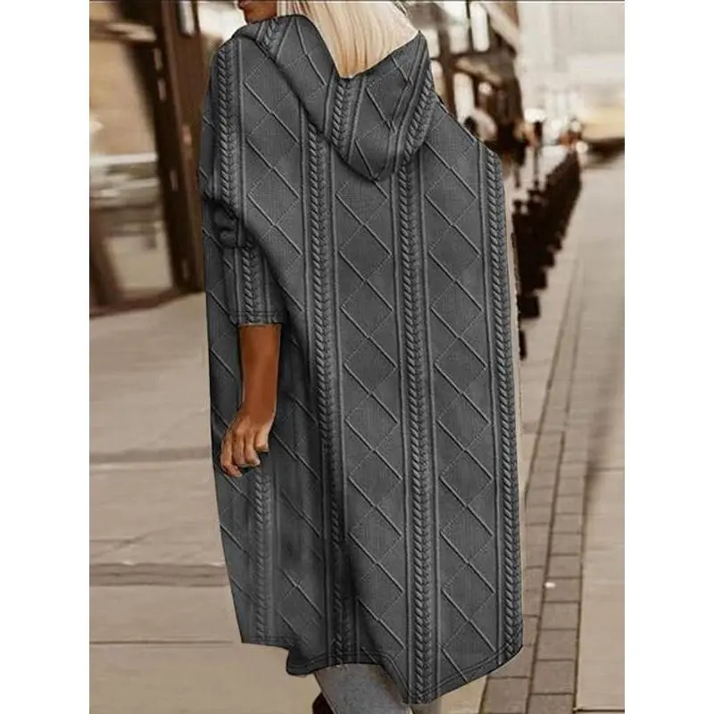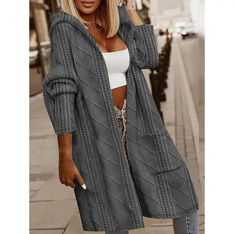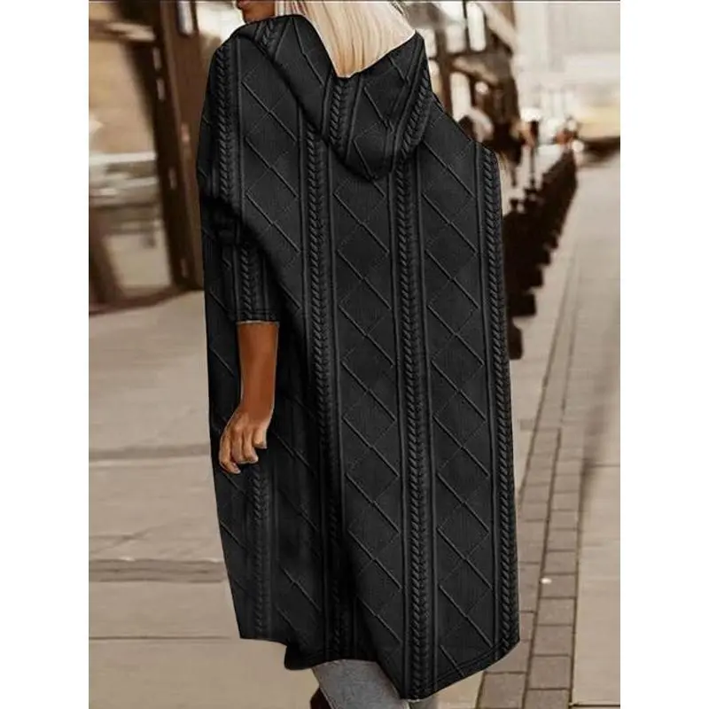 ��Plus Size�� Solid Pocket Drop Shoulder Hooded Jacket, Casual Long Sleeve Open Front Outerwear for Fall & Winter, Women Jackets for Winter, Women's Clothes for Daily Wear Valentine's Day, Gift, Jackets for Women